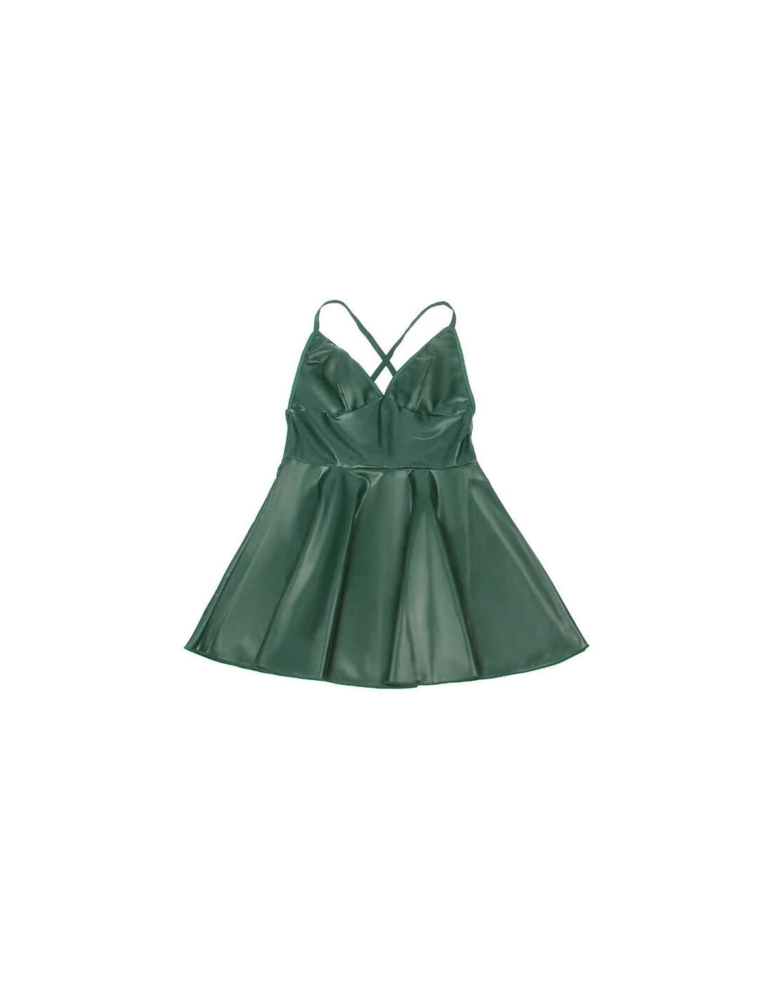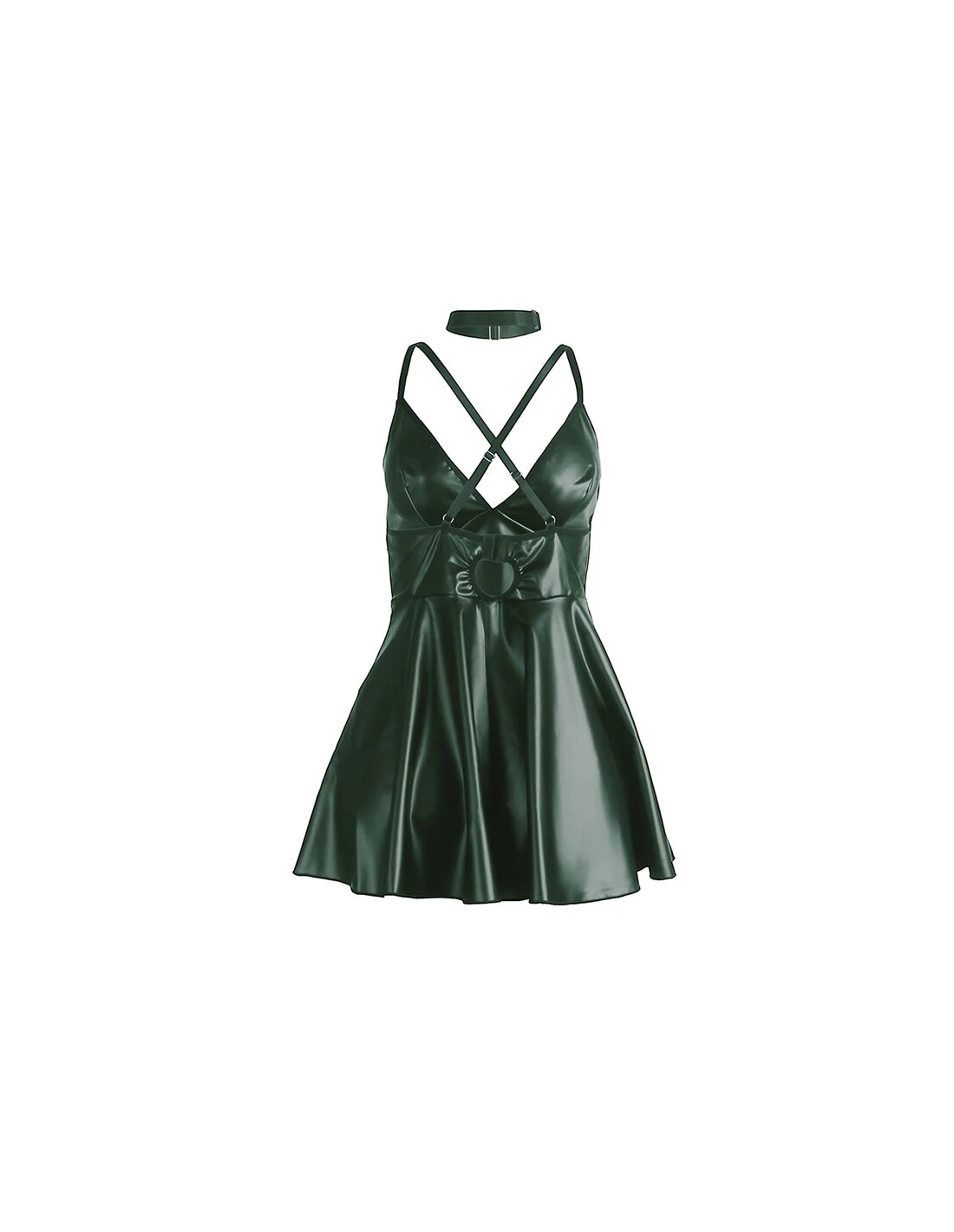 Eleva tu estilo y confianza con el Camisón Sexy Verde con Tirantes y Acabado en Cuero PU de SUBBLIME, una pieza diseñada para resaltar tu sensualidad y sofisticación. Con su acabado en cuero sintético PU en un tono verde vibrante y detalles que realzan tu figura, este camisón es la opción perfecta para aquellas noches especiales en las que quieres sentirte única y poderosa.