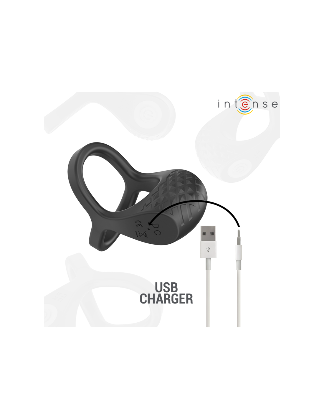 INTENSE ALEX ANILLO DOBLE VIBRADOR PENE 10 VIBRACIONES NEGRO