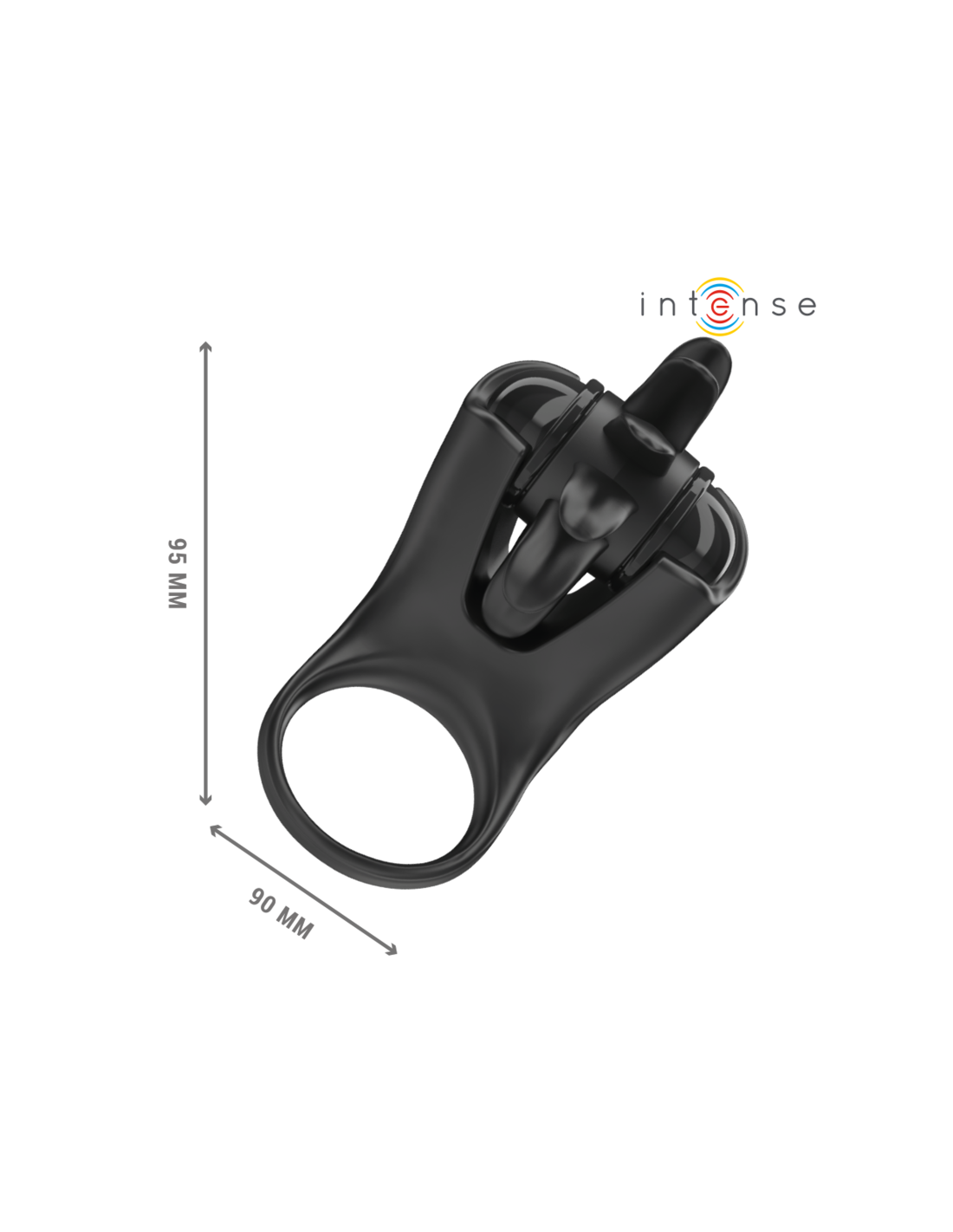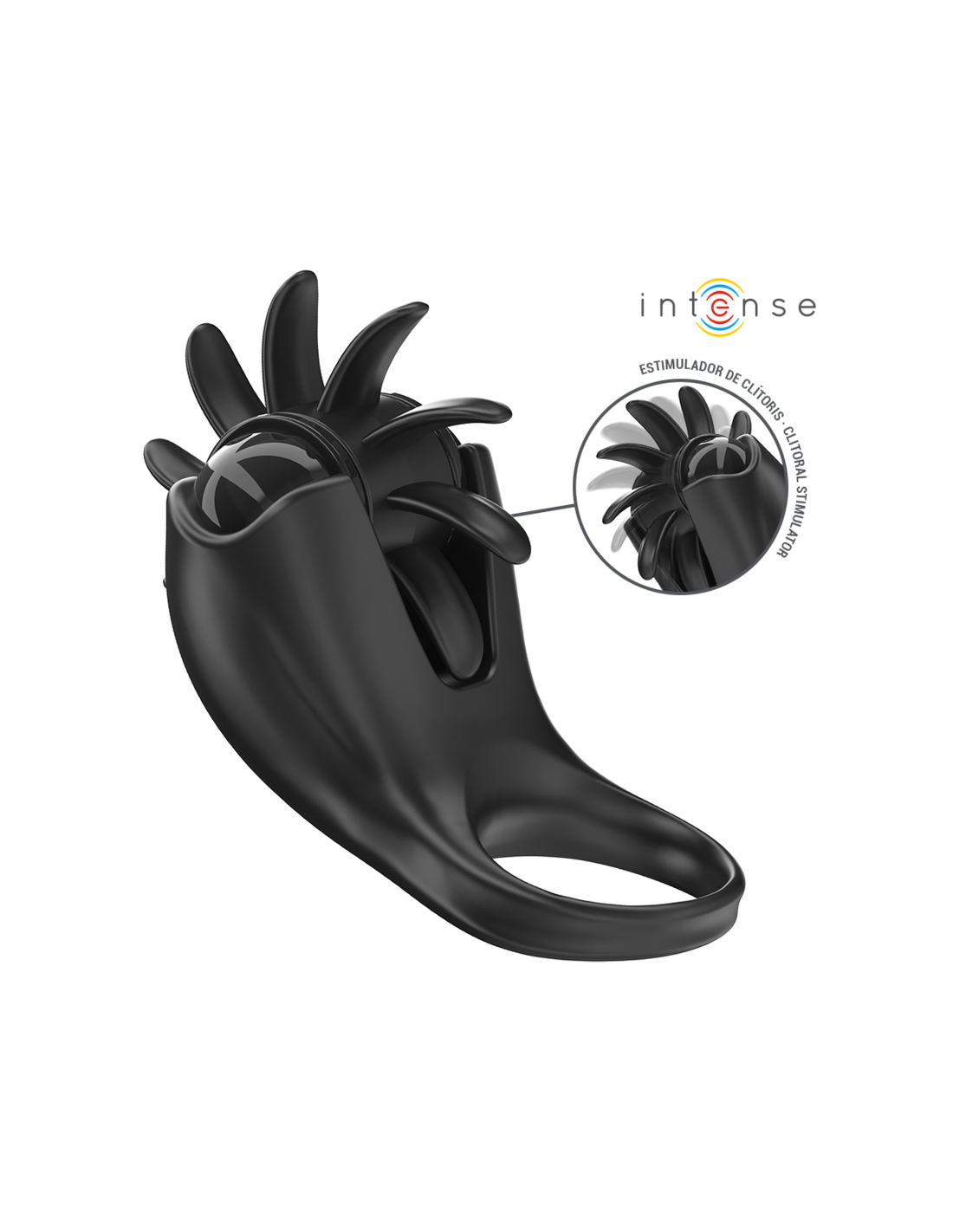 INTENSE MABEL ANILLO VIBRADOR 10 VIBRACIONES CON ESTIMULADOR DE CLITORIS NEGRO