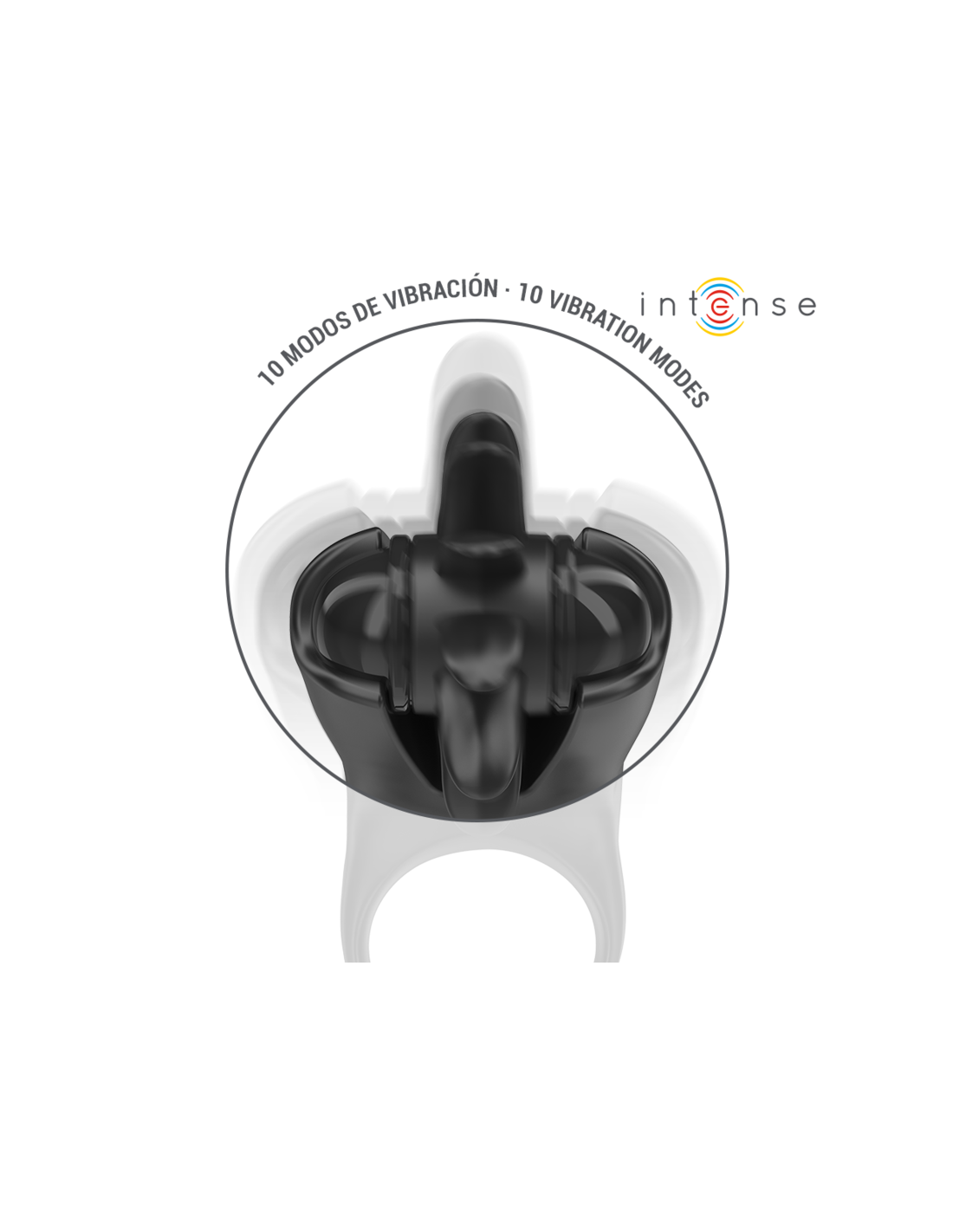 INTENSE - MABEL ANILLO VIBRADOR 10 VIBRACIONES CON ESTIMULADOR DE CLÍTORIS NEGRO