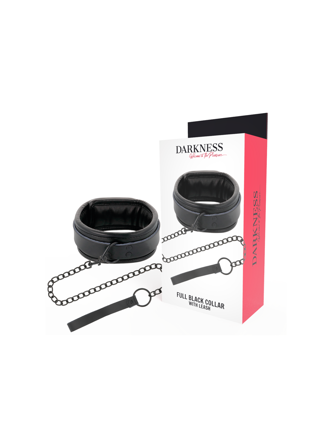 DARKNESS - FULL BLACK COLLAR WITH LEASH, D-221155