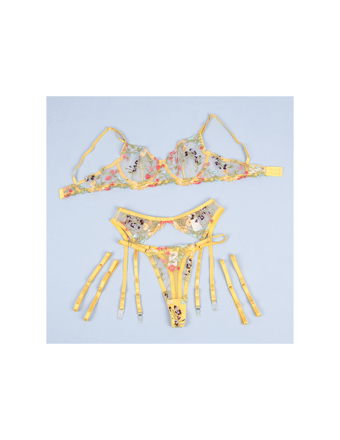 SUBBLIME - 954352 SUJETADOR + TANGA + LIGUEROS DISEÑO FLORAL AMARILLO L/XL