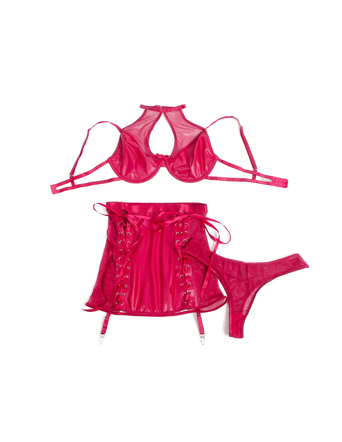 SUBBLIME - 957605 LEATHER BRA AND SKIRT SET RED S/M, D-242925