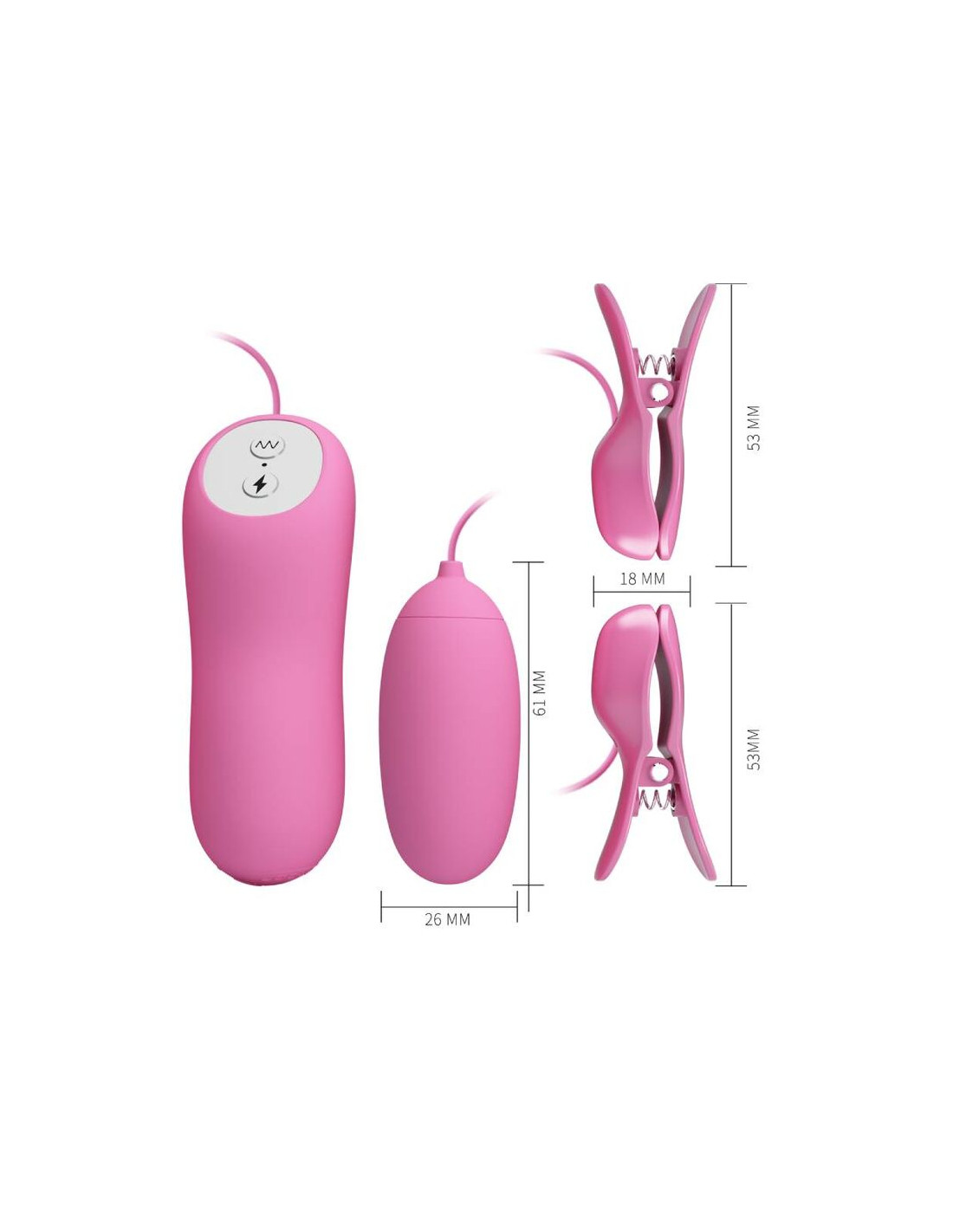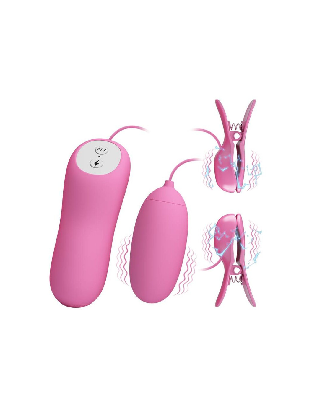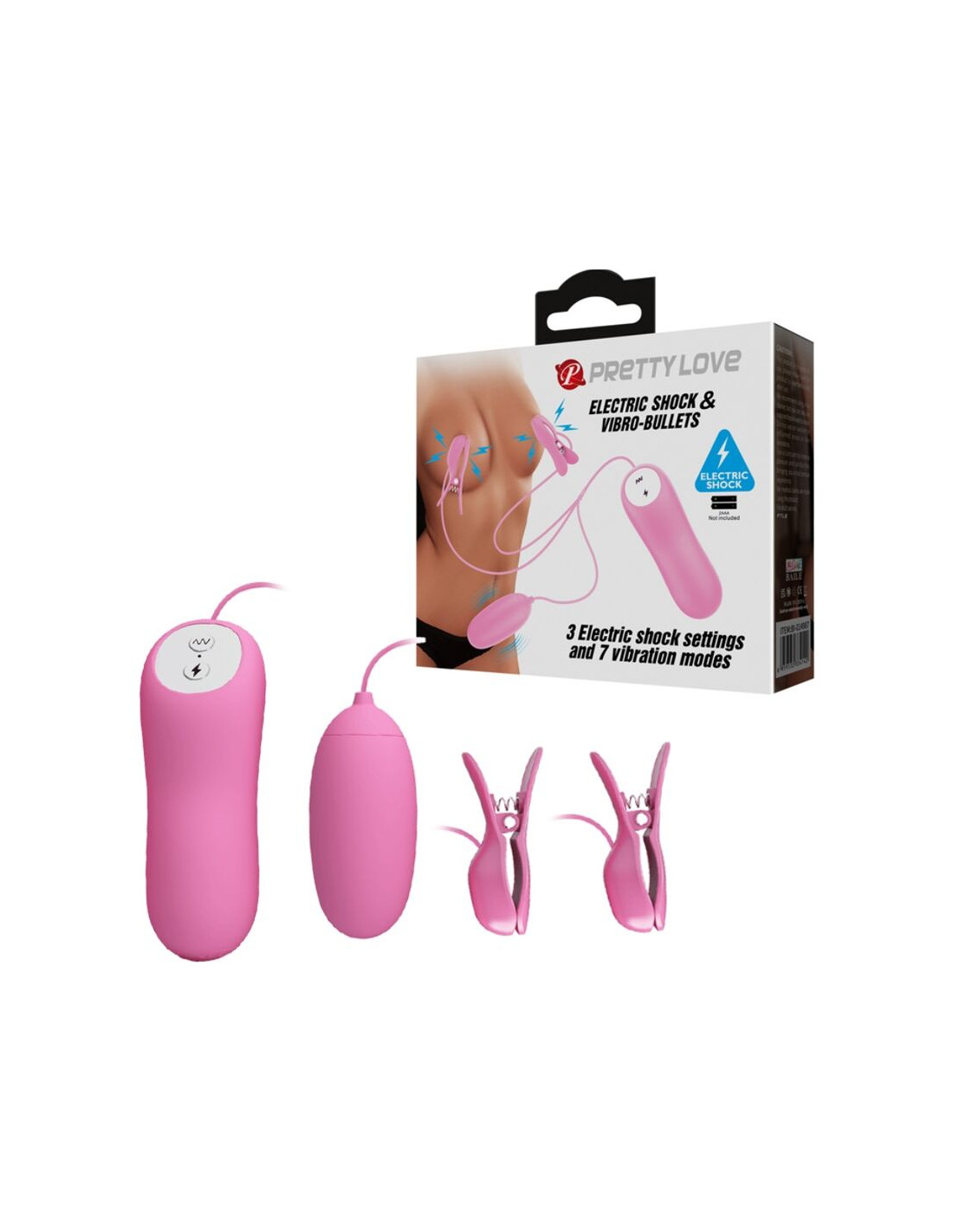 PRETTY LOVE - PINZAS CON VIBRACIÓN Y ELETROSHOCK ROSA