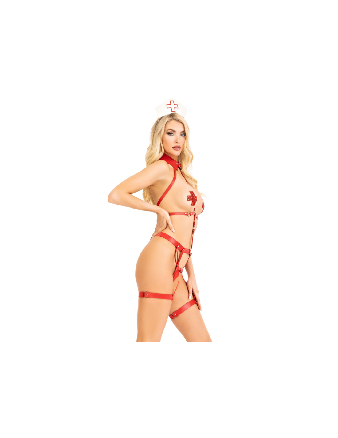 LEG AVENUE - HARNESS & HEADBAND NURSE RED S, D-238659