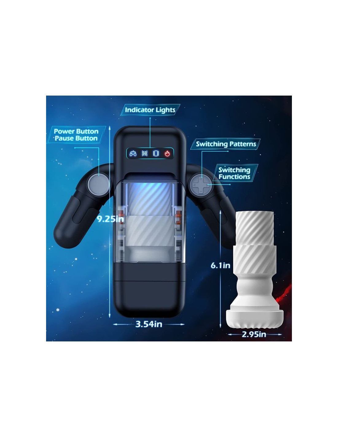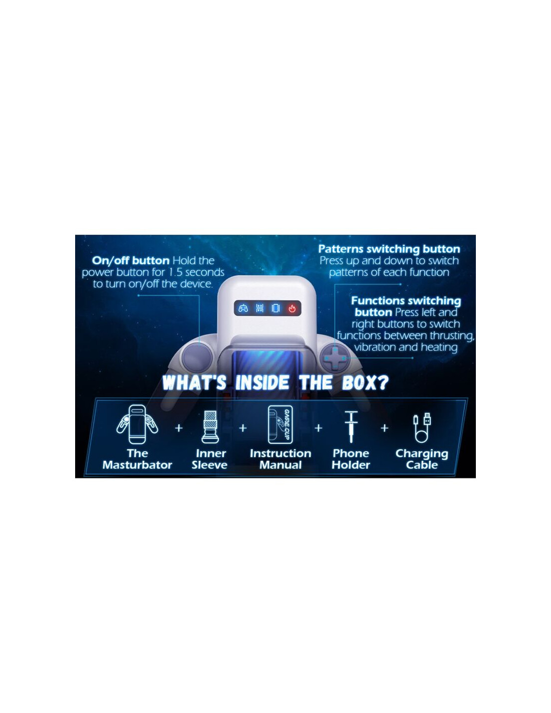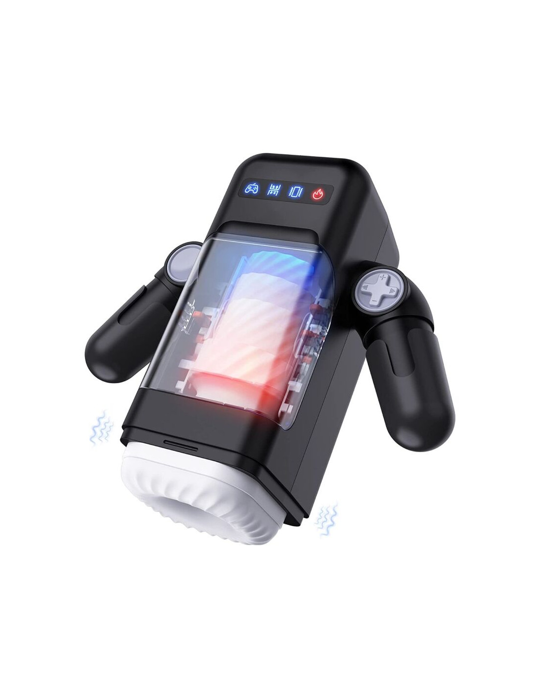 GAME CUP MASTURBADOR MASCULINO CON VIBRACION Y FUNCION CALOR CON SOPORTE PARA MOVILES NEGRO