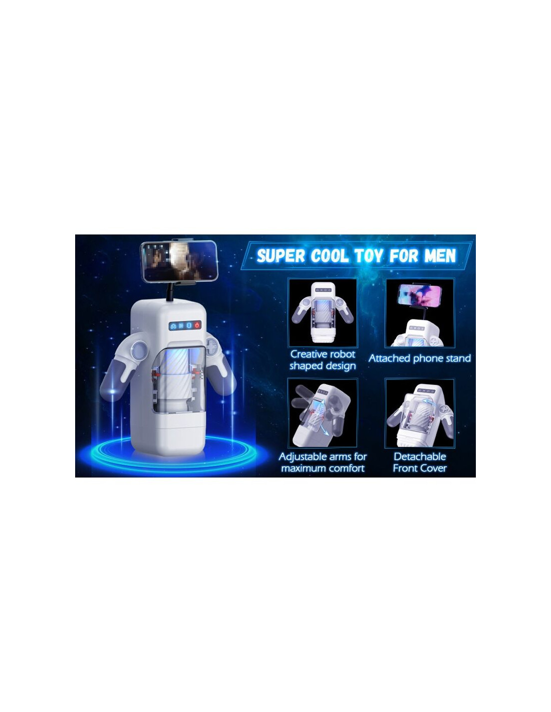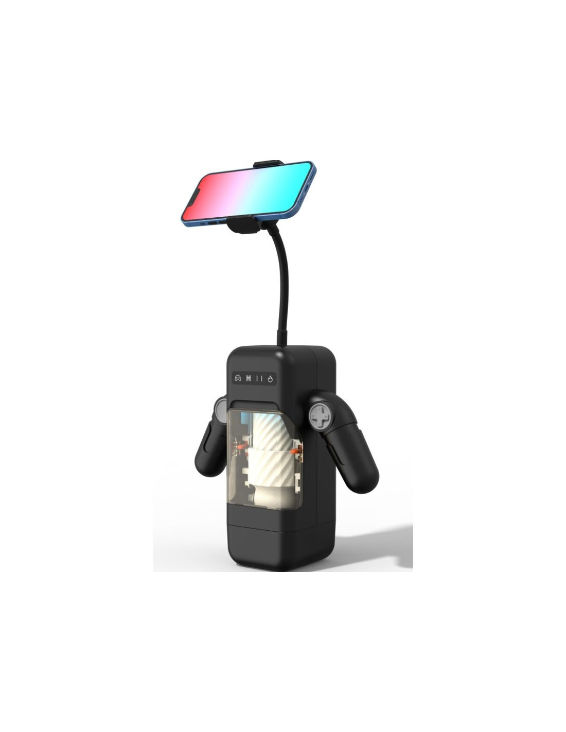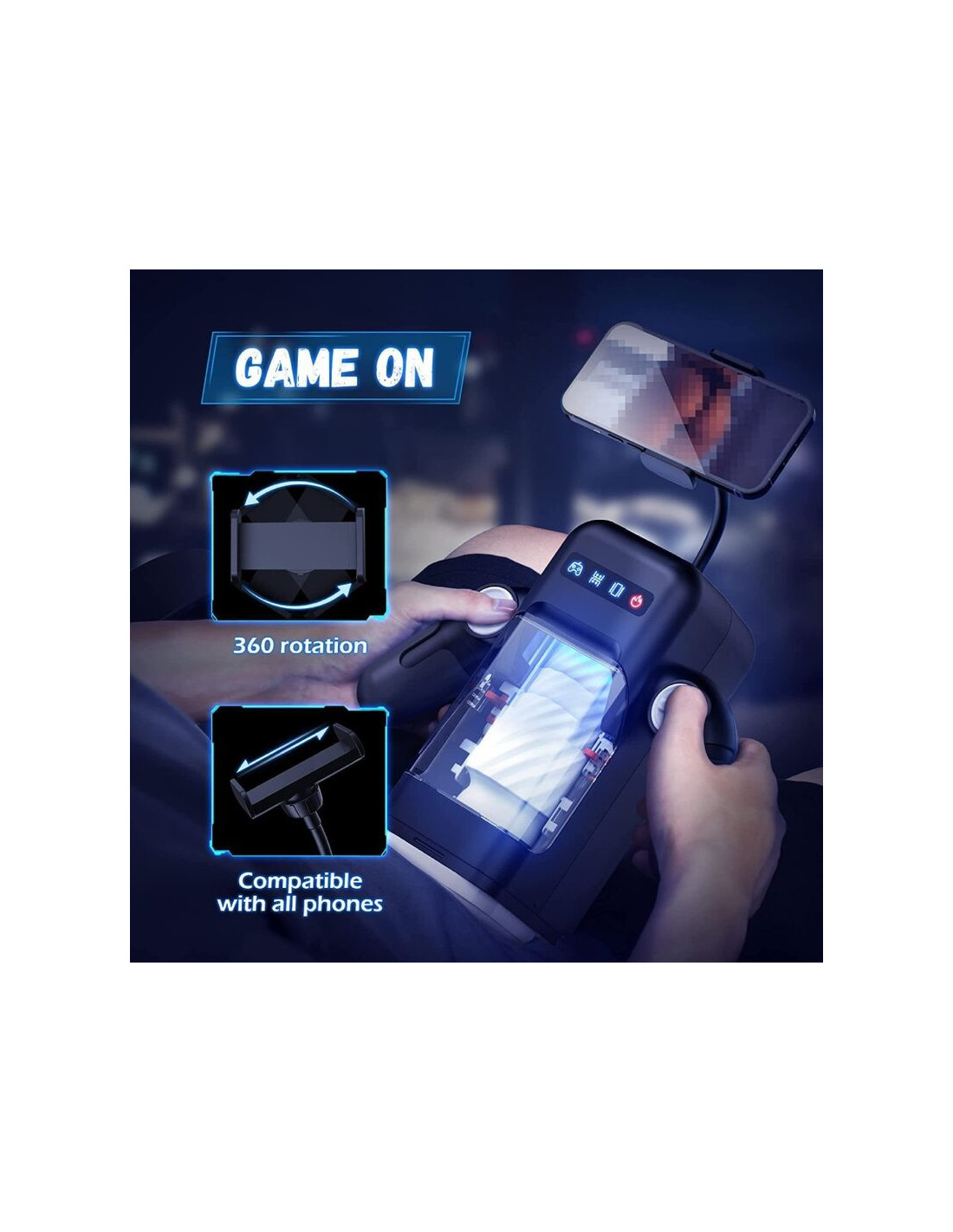 GAME CUP - MASTURBADOR MASCULINO CON VIBRACIÓN Y FUNCIÓN CALOR CON SOPORTE PARA MÓVILES - NEGRO