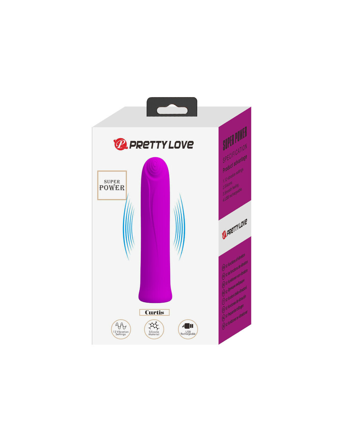 PRETTY LOVE - CURTIS MINI VIBRADOR SUPER POWER 12 VIBRACIONES SILICONA VIOLETA