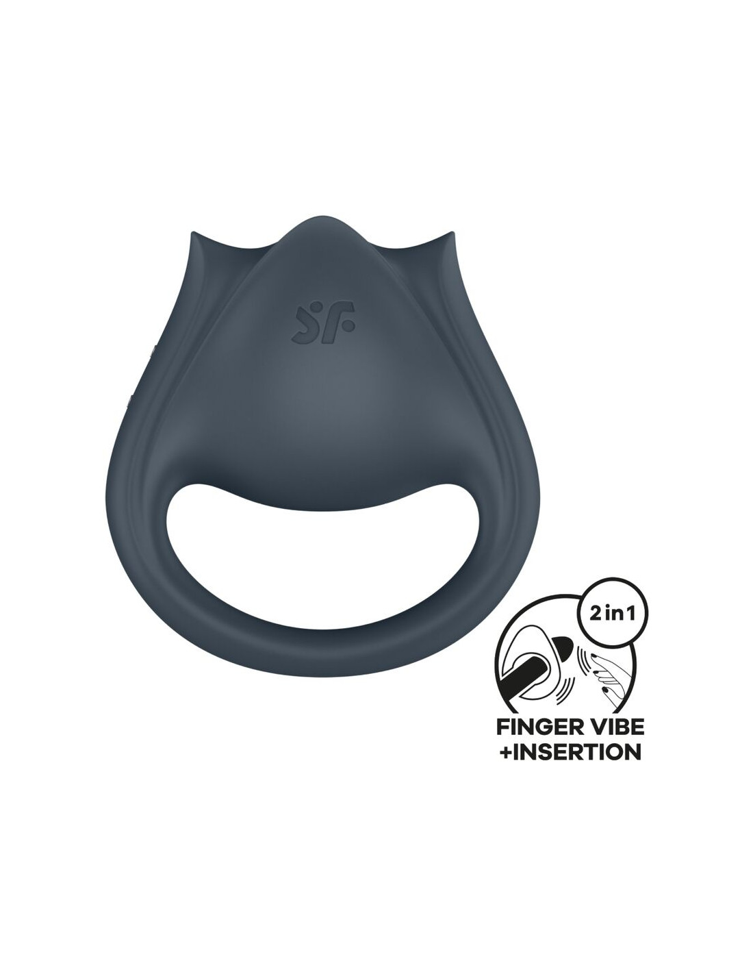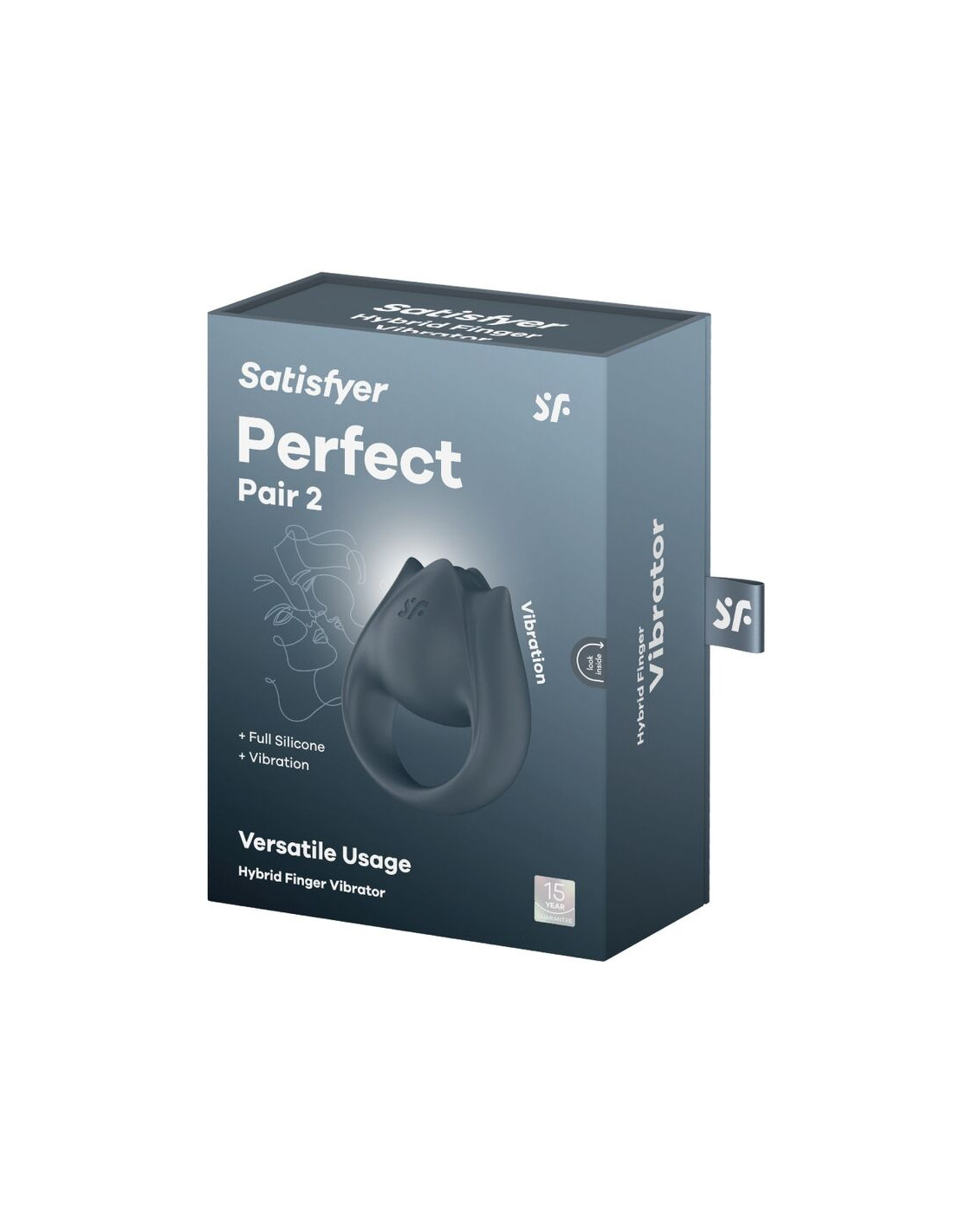 SATISFYER - PERFECT PAIR 2 MULTIVIBRADOR 2 EN 1 ANILLO PARA PENE & ESTIMULADOR DE DEDO GRIS