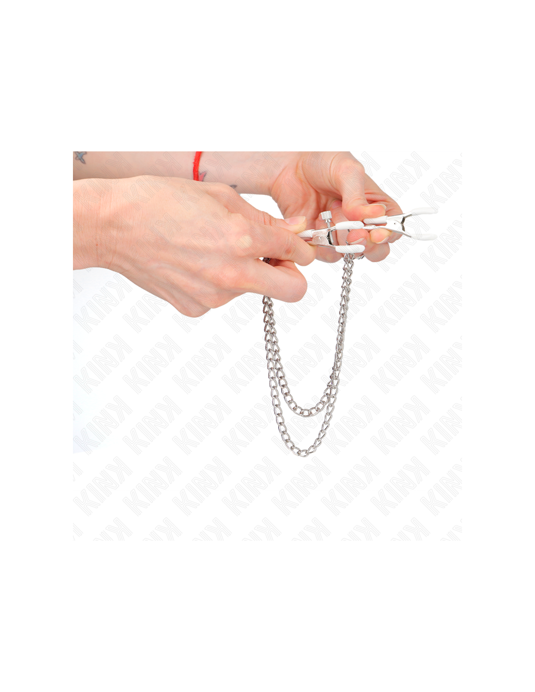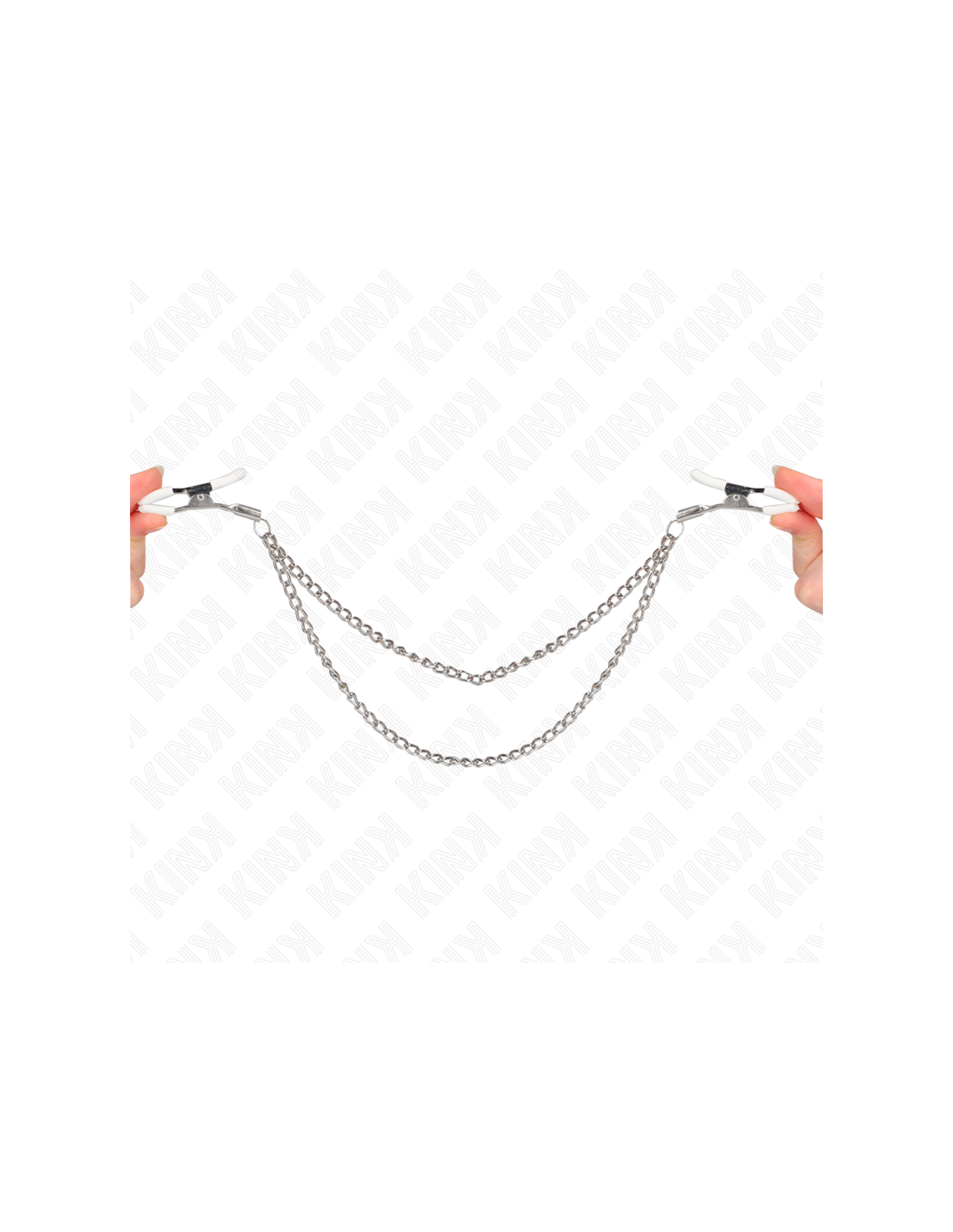 KINK - PINZAS PARA PEZONES CON DOBLE CADENA FINA PLATEADO 20/23 CM