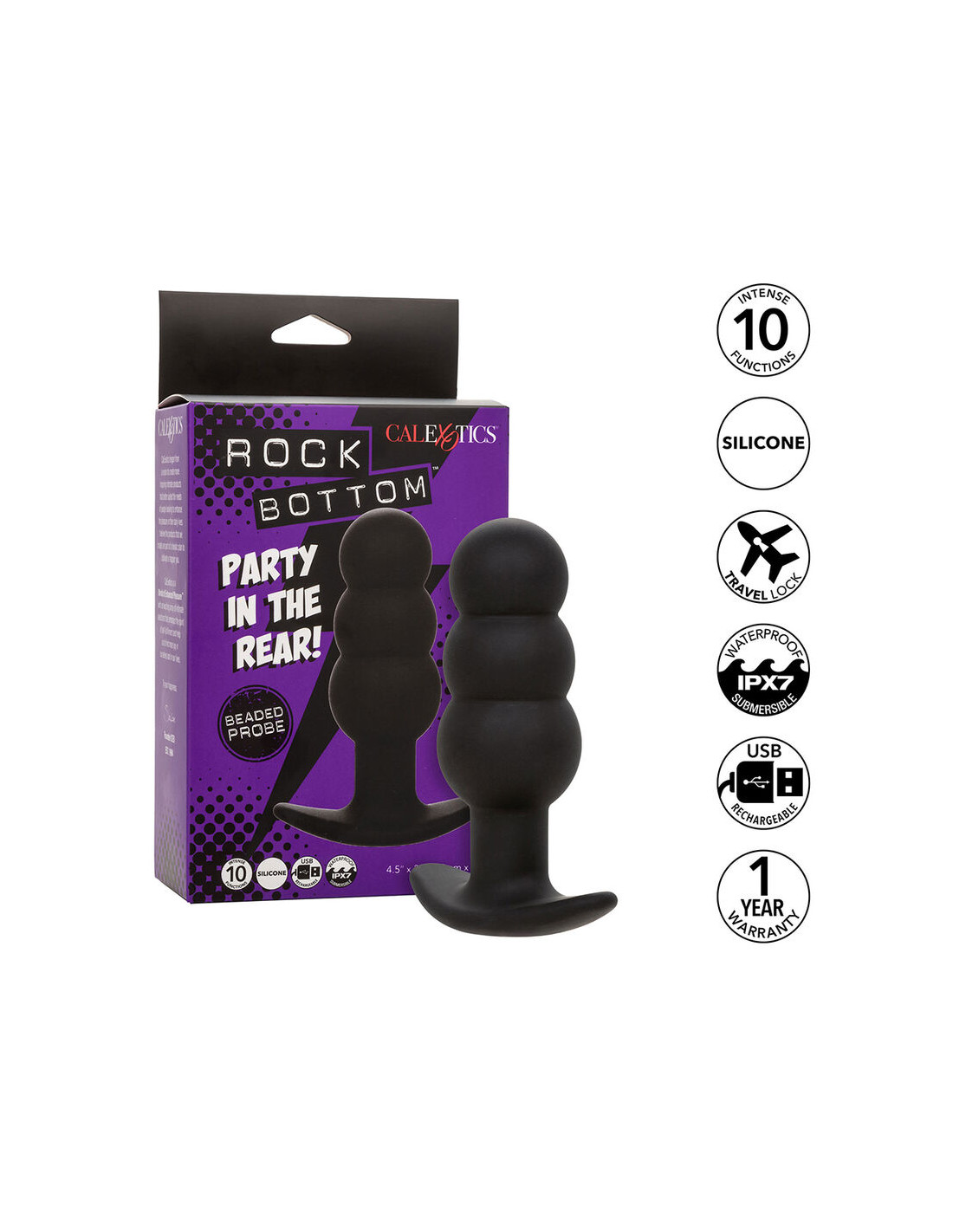 CALEXOTICS - ROCK BOTTOM PLUG ANAL CON CUENTAS 10 VIBRACIONES SILICONA NEGRO