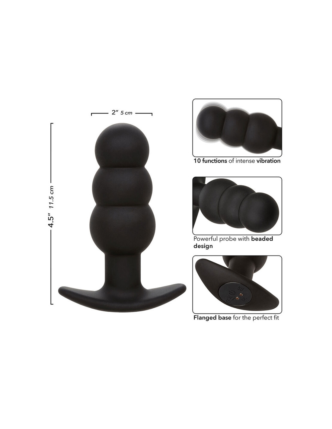 CALEXOTICS - ROCK BOTTOM BEADED ANAL PLUG 10 VIBRATIONS SILICONE BLACK, D-241435