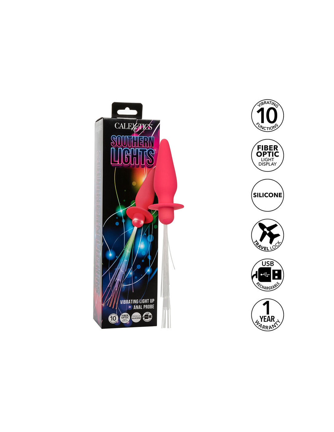 CALEXOTICS - SOUTHERN LIGHTS LIGHT UP PLUG ANAL CON LUCES 10 VIBRACIONES SILICONA ROSA