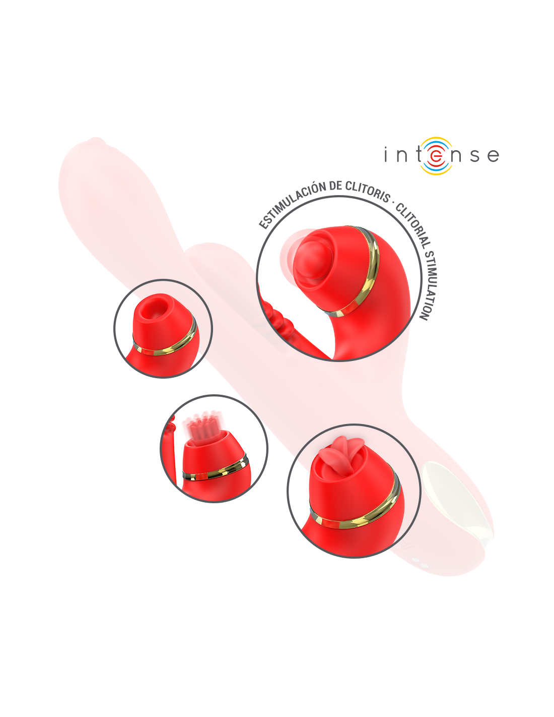 INTENSE - KATY ESTIMULADOR CLÍTORIS MULTIFUNCIÓN 4 CABEZALES INTERCAMBIABLES ROJO