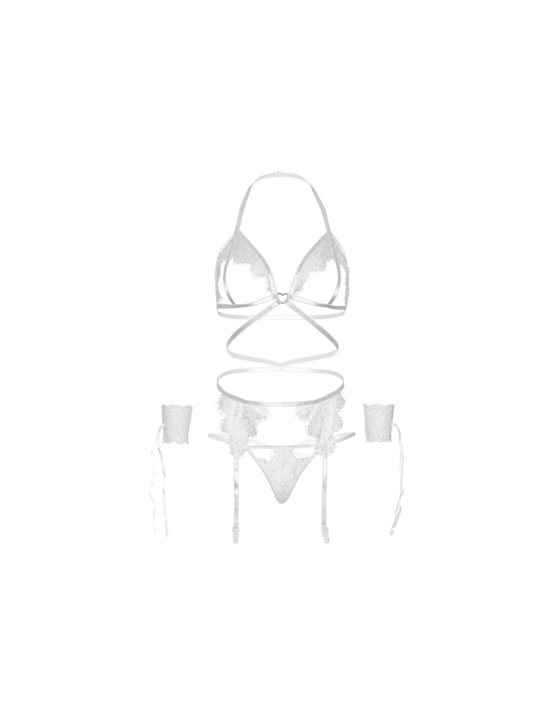 LEG AVENUE SET CUATRO PIEZAS SUJETADOR, LIGUERO, TANGA Y PUÑOS TALLA UNICA - NEGRO