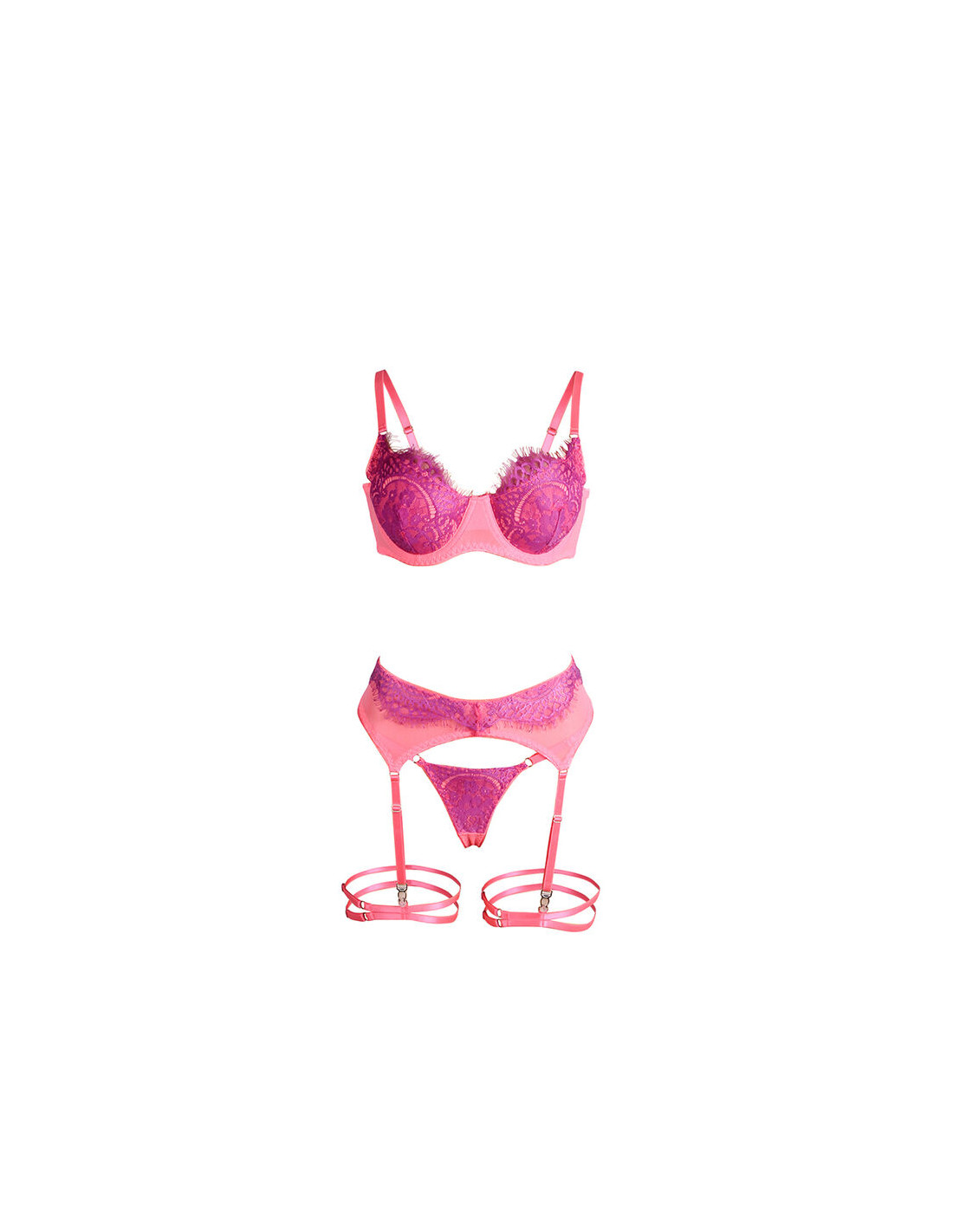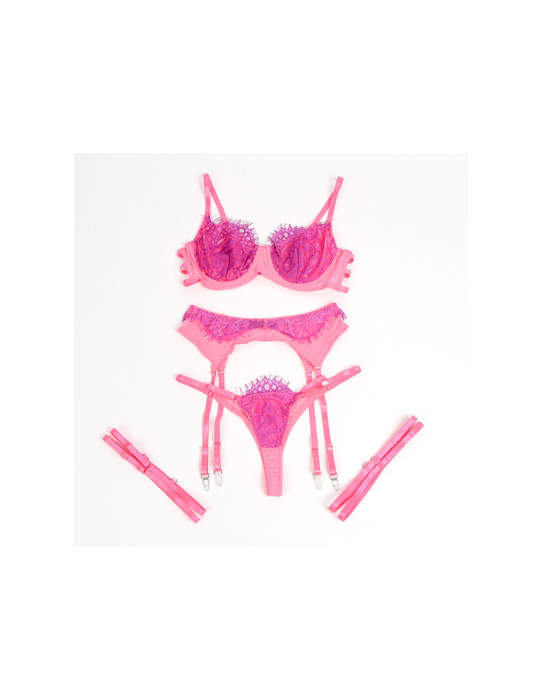SUBBLIME 955366 SET SUJETADOR CON ENCAJE Y LIGUEROS ROSA Y MORADO L XL