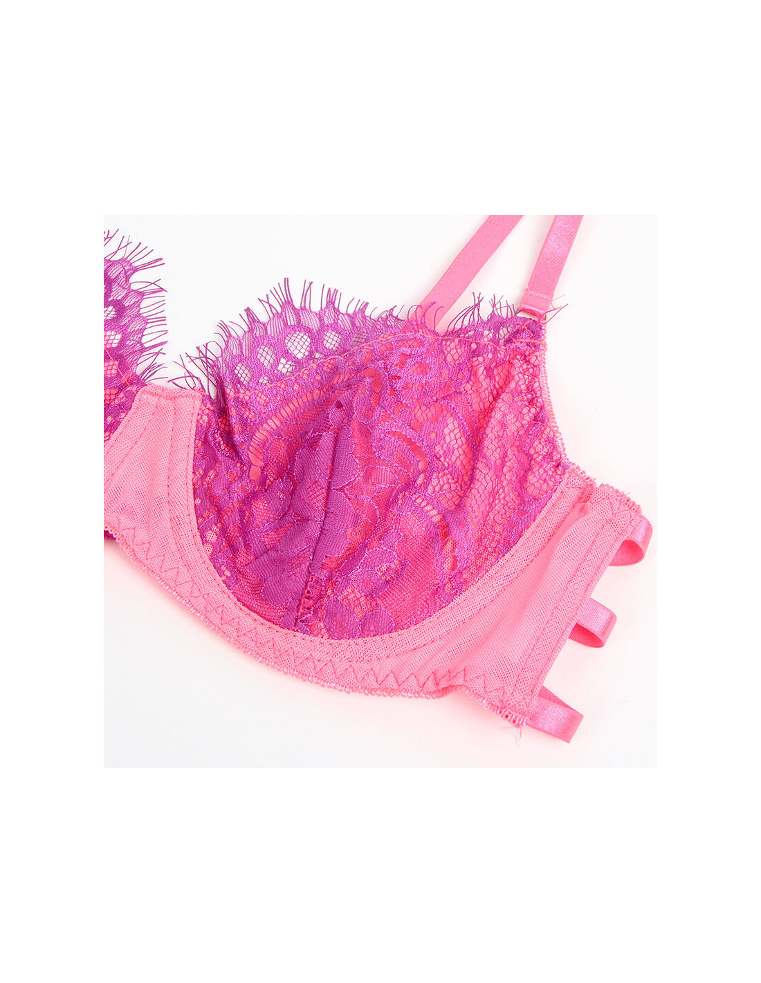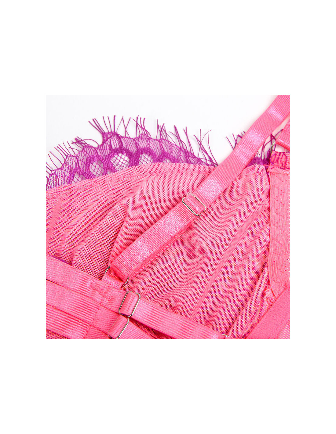SUBBLIME - 955366 BRA SET WITH LACE AND GARTER LINES PINK AND PURPLE L/XL, D-242655