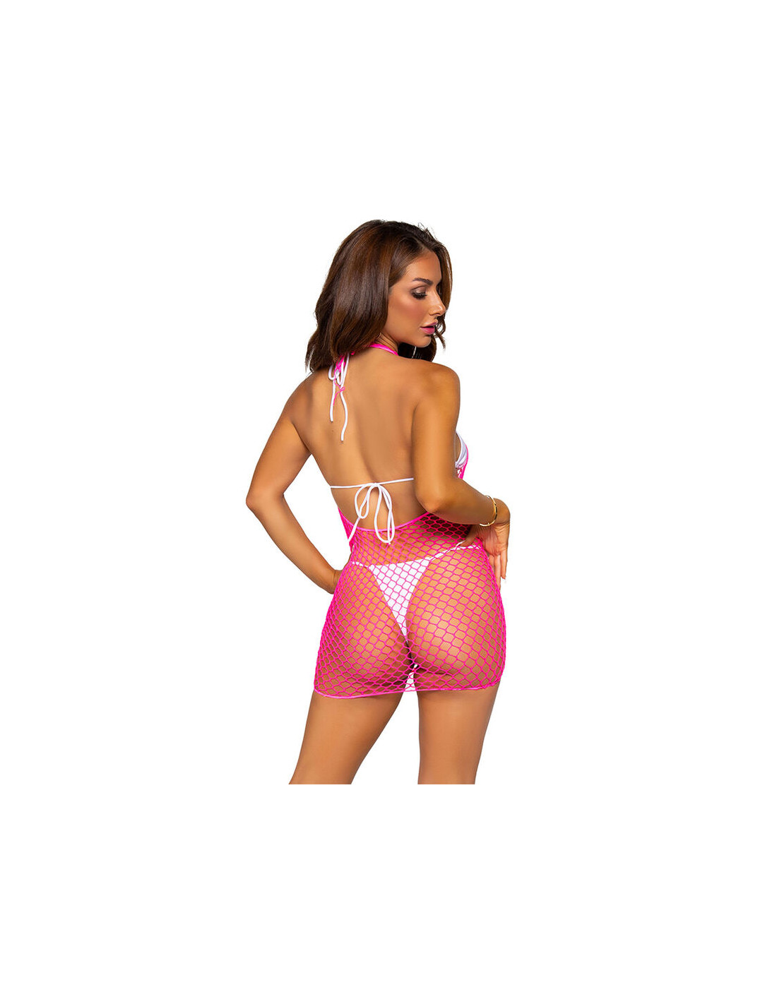 LEG AVENUE - NET CROSSED DRESS FUCHSIA ONE SIZE, D-240101