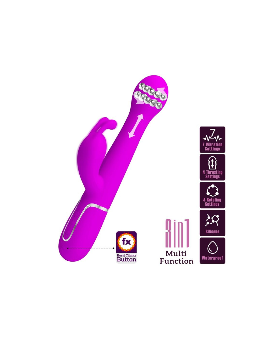 PRETTY LOVE - DEJON RABBIT VIBRATOR 3 IN 1 MULTIFUNCTION VIOLET, D-238772