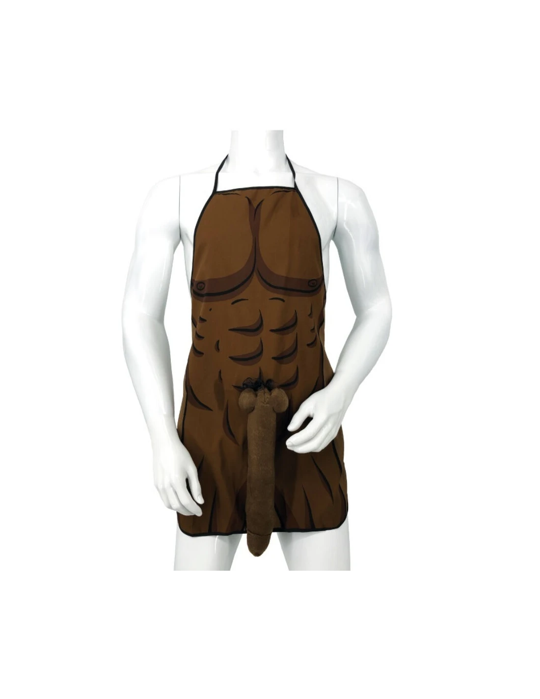 Delantal con diseño impreso de torso masculino musculoso y pene 3D colgante en tela suave con detalles de vello sintético. Ideal para despedidas de soltero/a, fiestas de adultos, cumpleaños con bromas o cualquier ocasión que necesite una dosis extra de risa y picardía. El delantal cubre completamente el torso y se ajusta fácilmente con cintas al cuello y cintura.