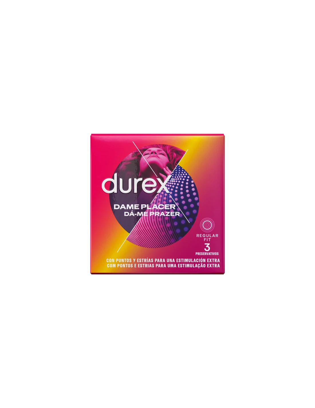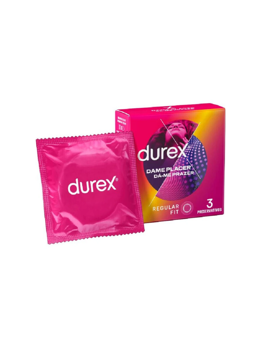 Durex Dame Placer son preservativos que suben la temperatura entre las sábanas. Sus puntos y estrías crean una experiencia sexual más intensa para ti y tu pareja.