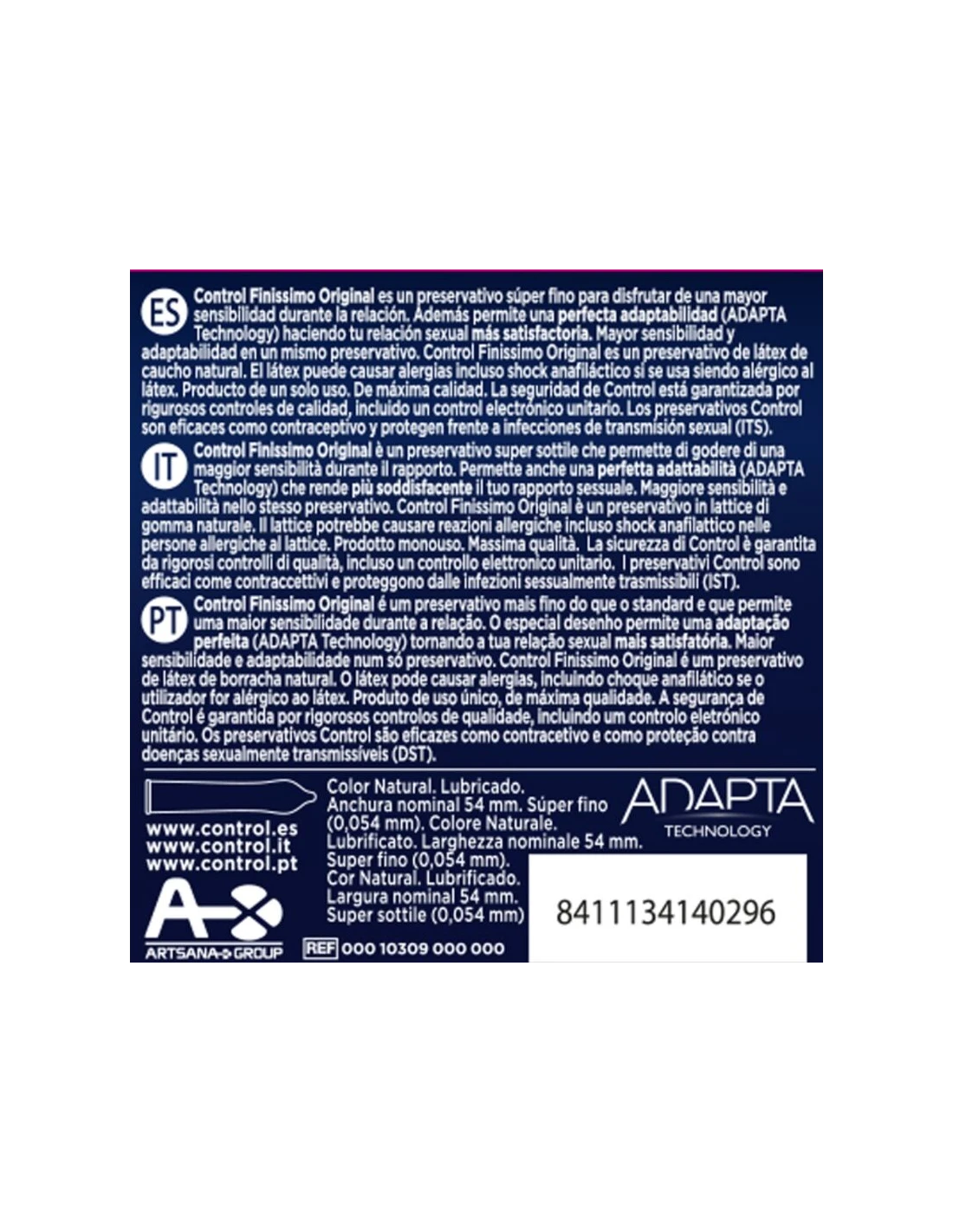 El preservativo más fino de Control. Su espesor súper fino facilita el disfrutar de una sensibilidad extrema, mientras que su forma ergonómica favorece una óptima adaptabilidad. Hecho de látex, con depósito y lubricado.
