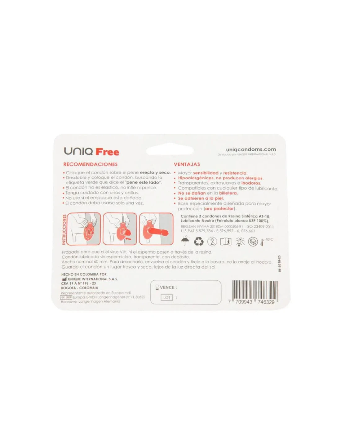 UNIQ - FREE PRESERVATIVOS CON ARO PROTECTOR SIN LATEX 3 UNIDADES