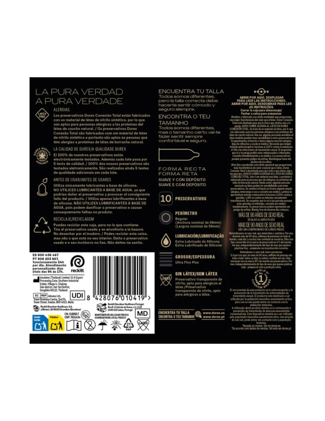 DUREX - CONEXIÓN TOTAL ULTRA FINO PLUS SIN LÁTEX 10 UNIDADES