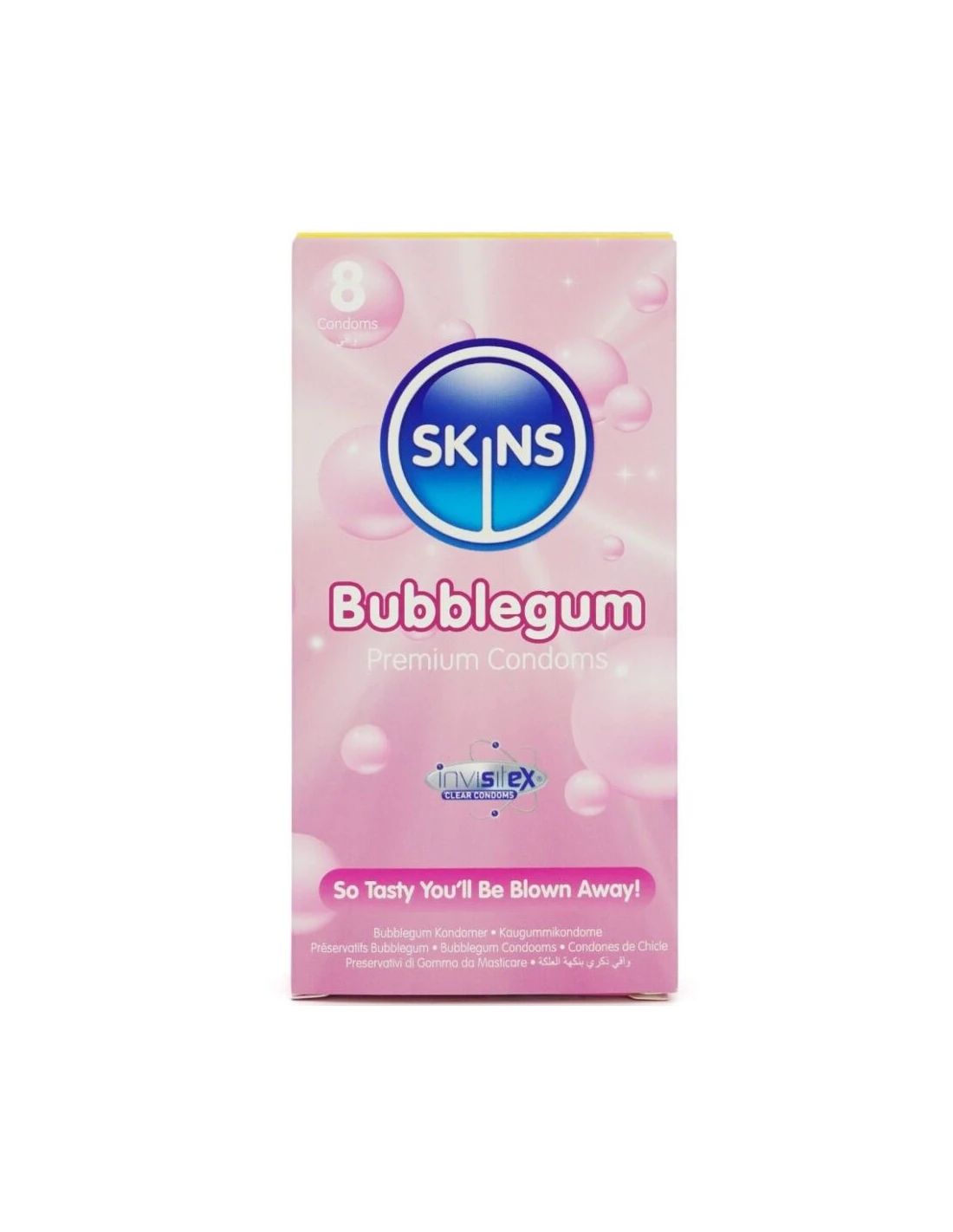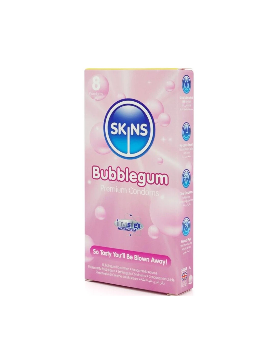 SKINS - PRESERVATIVOS PREMIUM SABOR CHICLE PACK 8