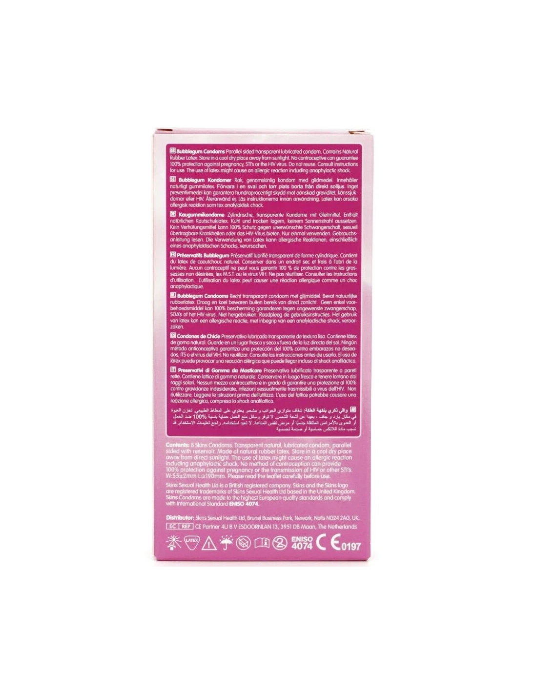 Presentamos nuestro nuevo Pack de 8 Chicle, con un diseño elegante y listo para usar, y hasta un 33 % más de condones que el líder del mercado. Dale un toque divertido y afrutado a tu gama de productos con los condones Skins Blow Me con sabor a Chicle. Diseñados para la seguridad y el disfrute, estos condones envueltos individualmente ofrecen un vibrante aroma y sabor a chicle, lo que los convierte en la opción ideal para mejorar el sexo oral sin sacrificar la protección. Perfectos para tiendas de productos para adultos y bienestar que buscan ampliar su oferta de condones con sabores.