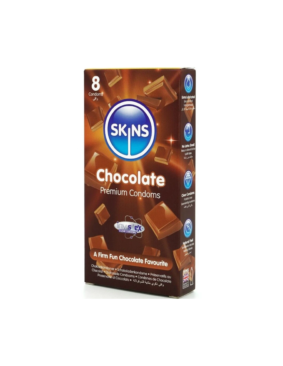 SKINS - PRESERVATIVOS PREMIUM SABOR CHOCOLATE PACK 8