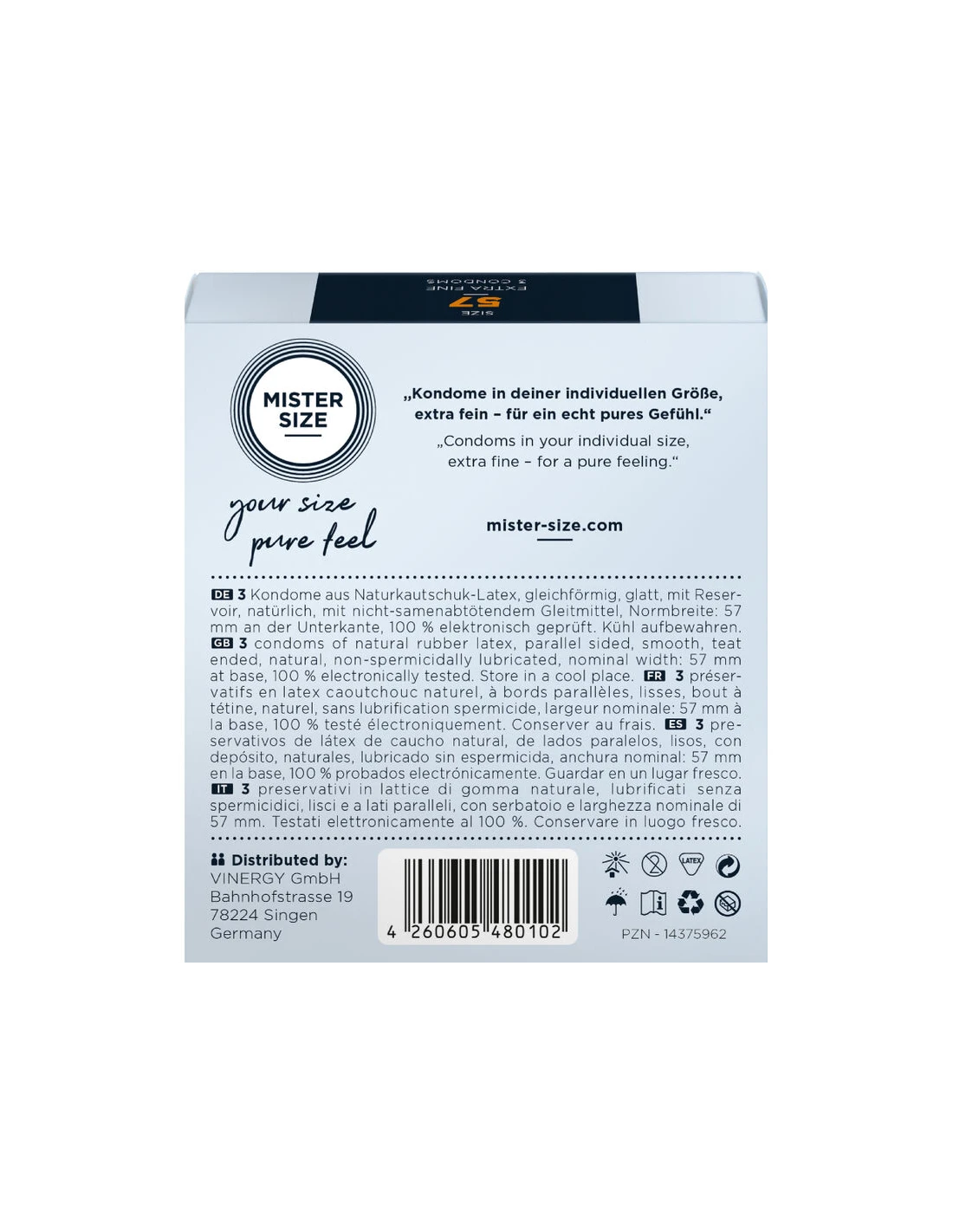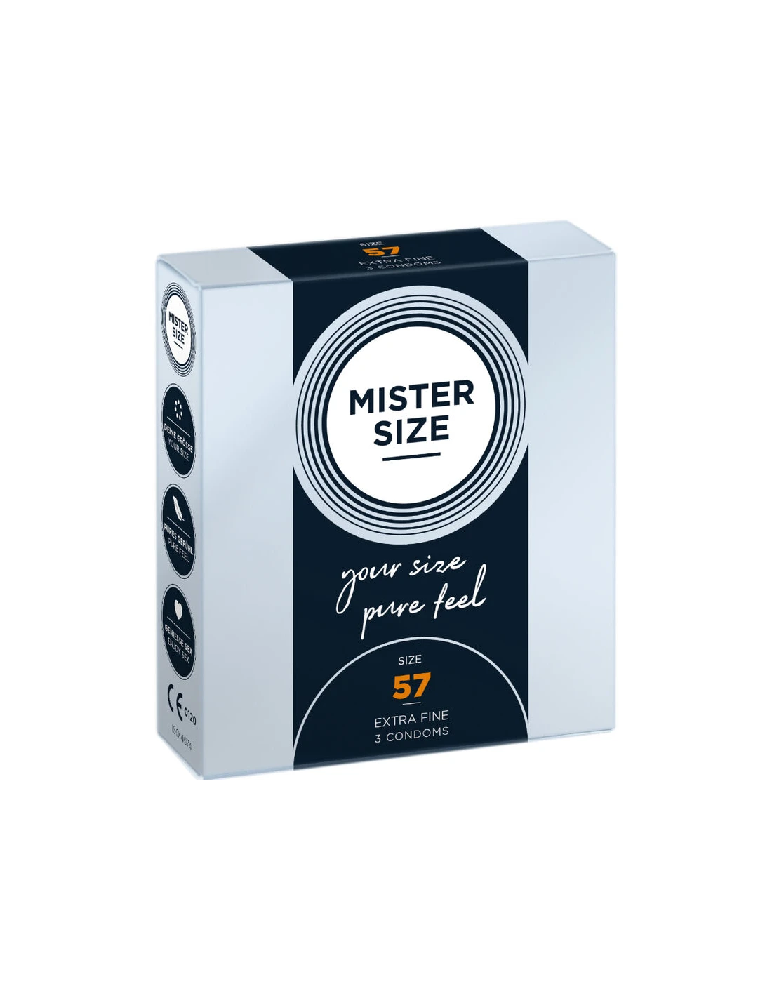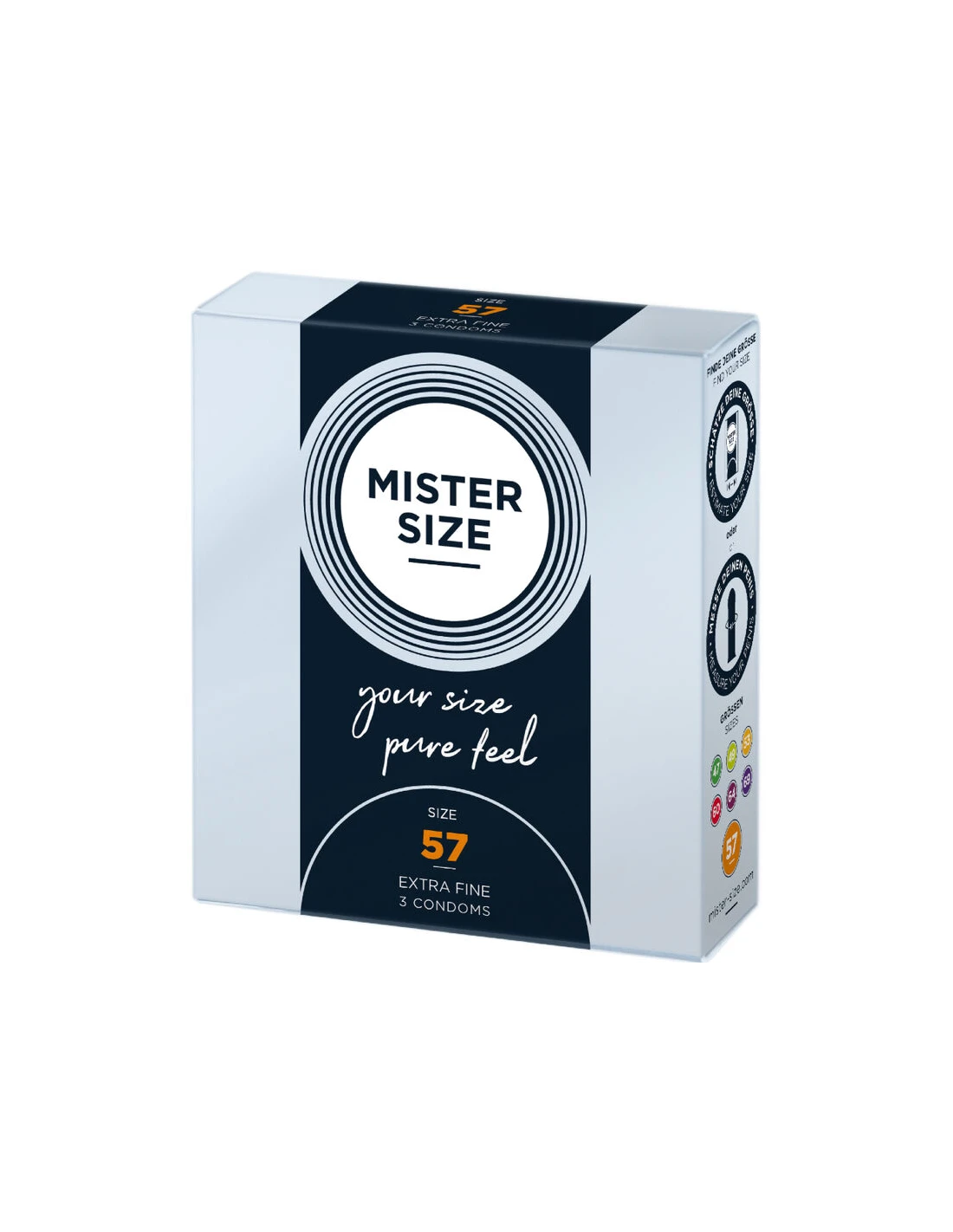 A veces, lo estándar no es suficiente. Al colocarte el condón, probablemente ya hayas experimentado la molestia de que no te quede tan ajustado. No es de extrañar que aún no hayas encontrado tu talla personal. Pero a partir de ahora siempre podrás llevar contigo MISTER SIZE 57. Ahora que la química es la adecuada, podrás experimentar lo ligero que puede ser el sexo.