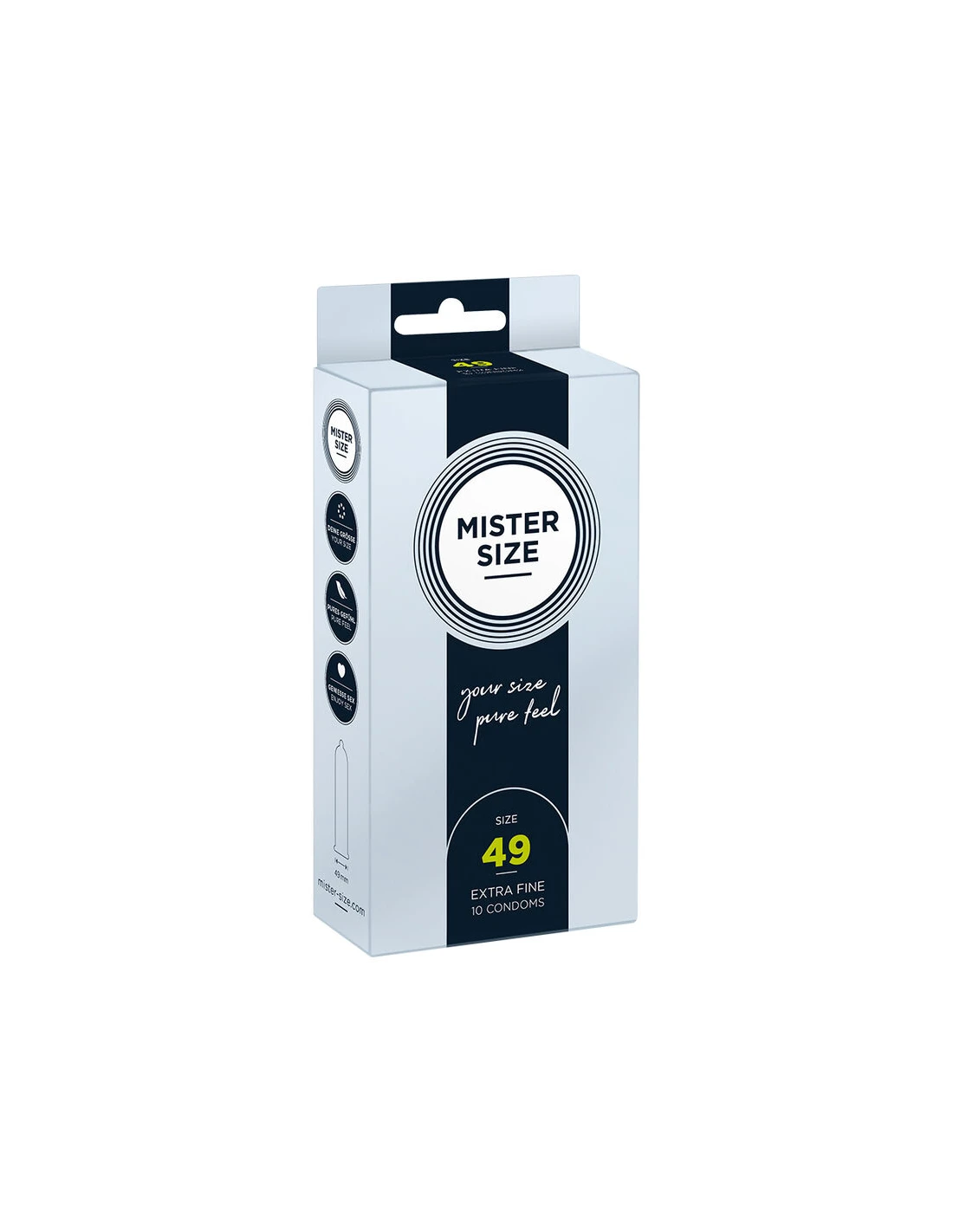 Más sensaciones con su tamaño de condón individual Gracias a MISTER SIZE, los problemas con los condones son cosa del pasado. Una vez que haya encontrado su tamaño ideal y todo se ajuste perfectamente, podrá volver a experimentar la sensación pura del sexo, dejarse llevar y perderse el uno en el otro.