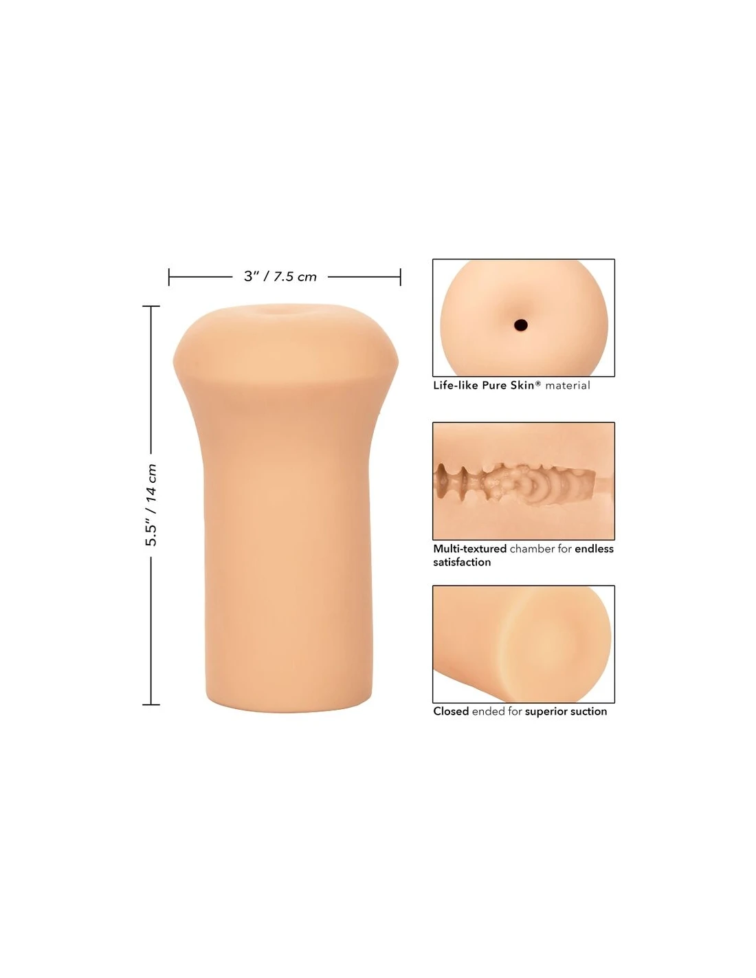 Material de piel pura realista | Suave, apretado y elástico | Cámara multitextura para una satisfacción infinita | Extremo cerrado para una succión superior | Higiénicamente superior y sin mantenimiento
