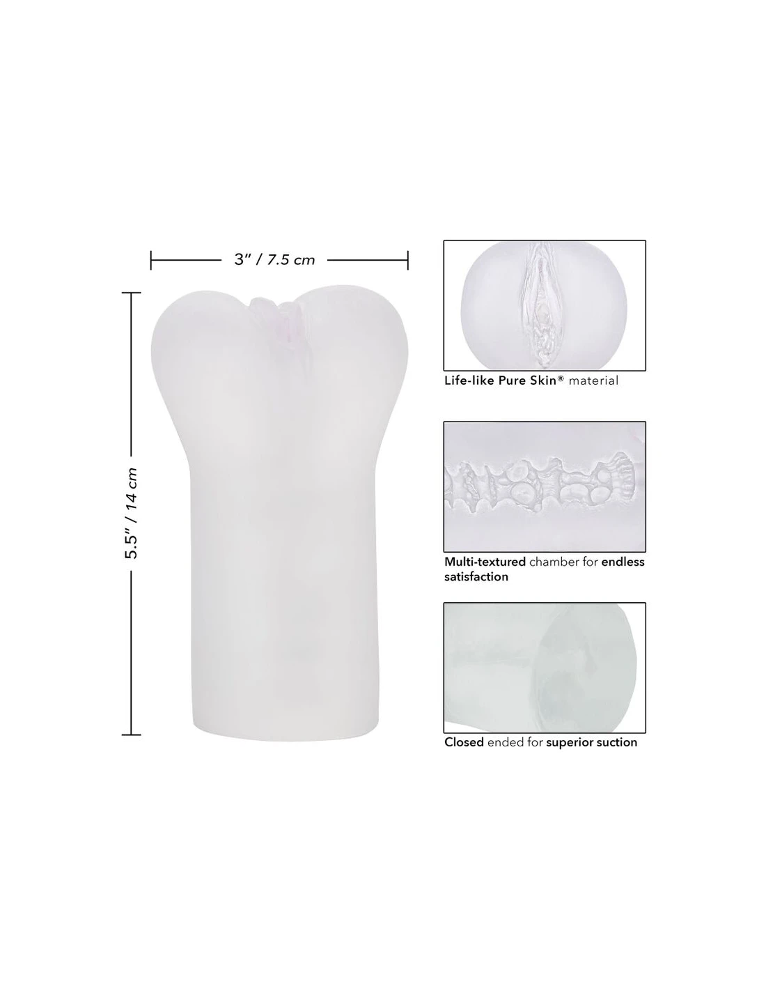 Material de imitación a piel real | Suave, ajustado y elástico | Cámara con múltiples texturas para una satisfacción infinita | Extremo cerrado para una succión superior | Higiénicamente superior y sin mantenimiento