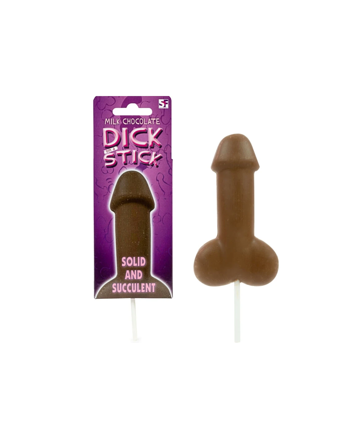 ¡Un viejo favorito! La divertida polla de chocolate con leche en un palito. ¡Delicioso chocolate con leche en una forma fácil de mordisquear para provocar algunas risas en cualquier ocasión!