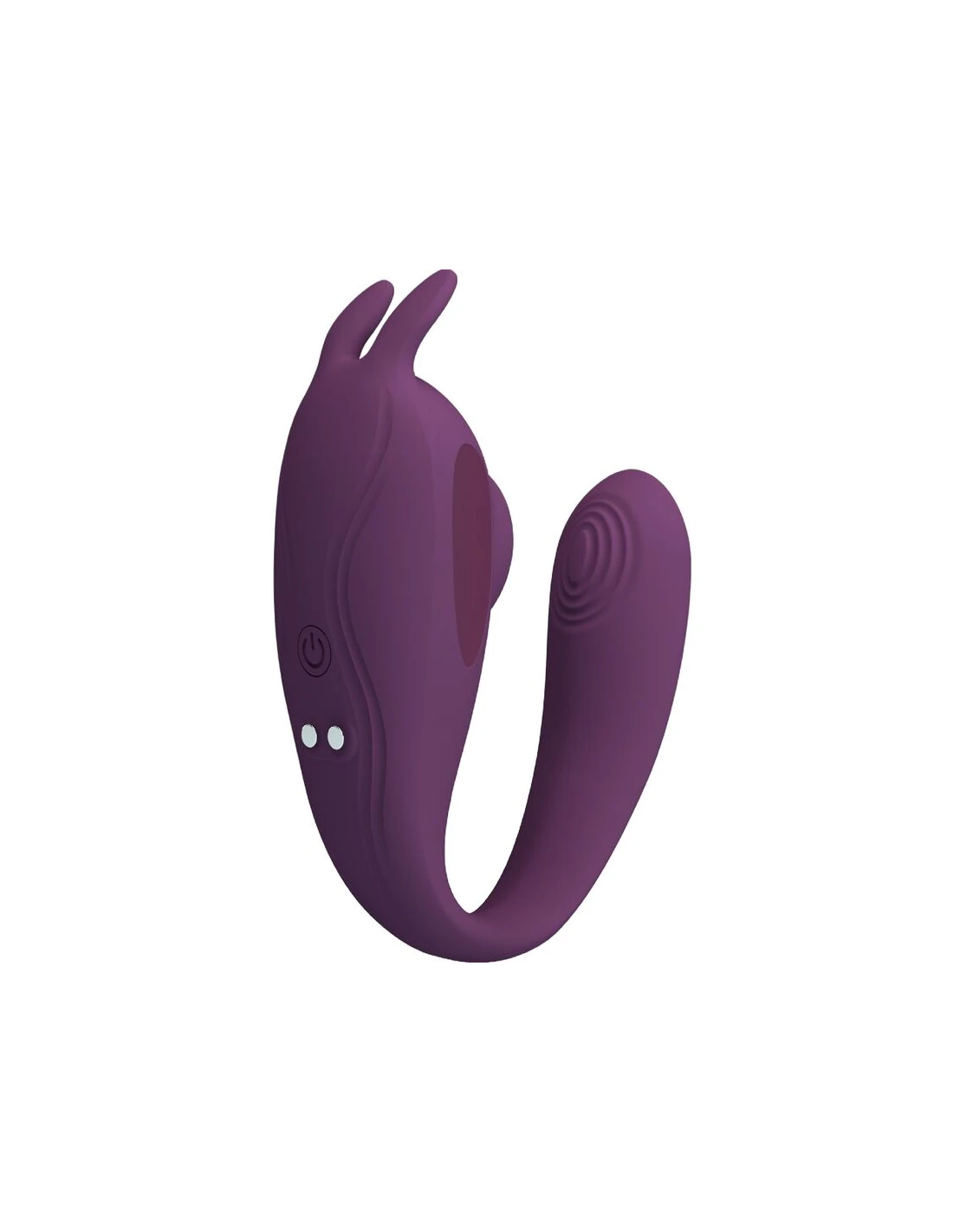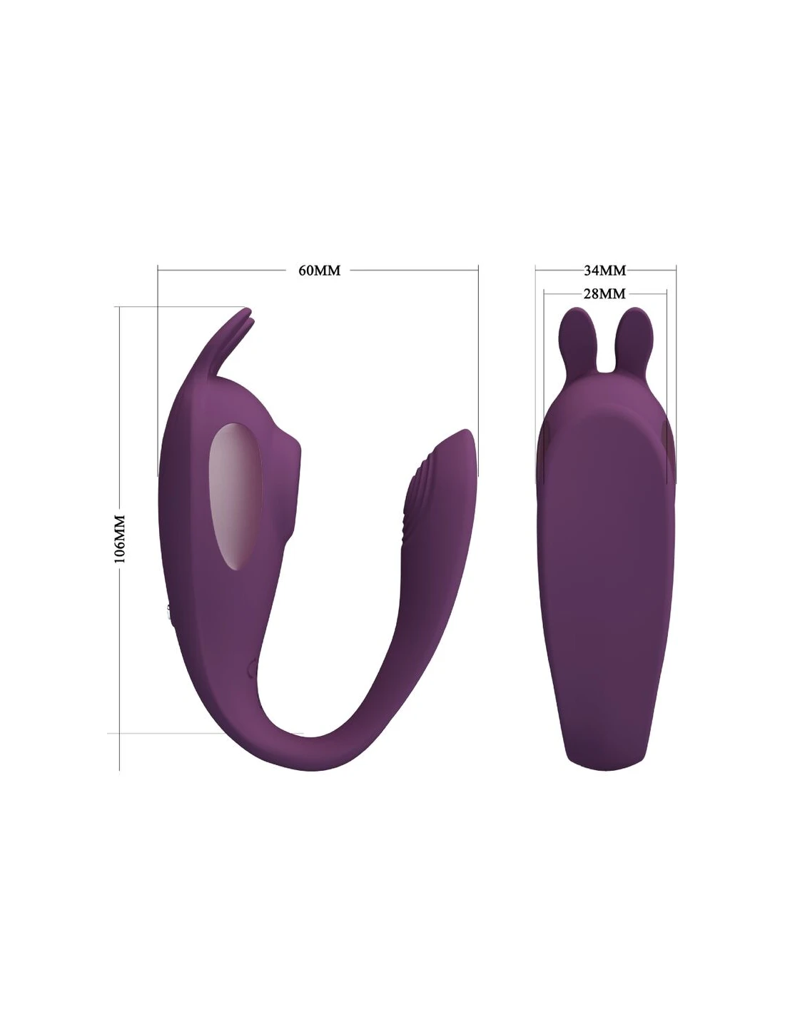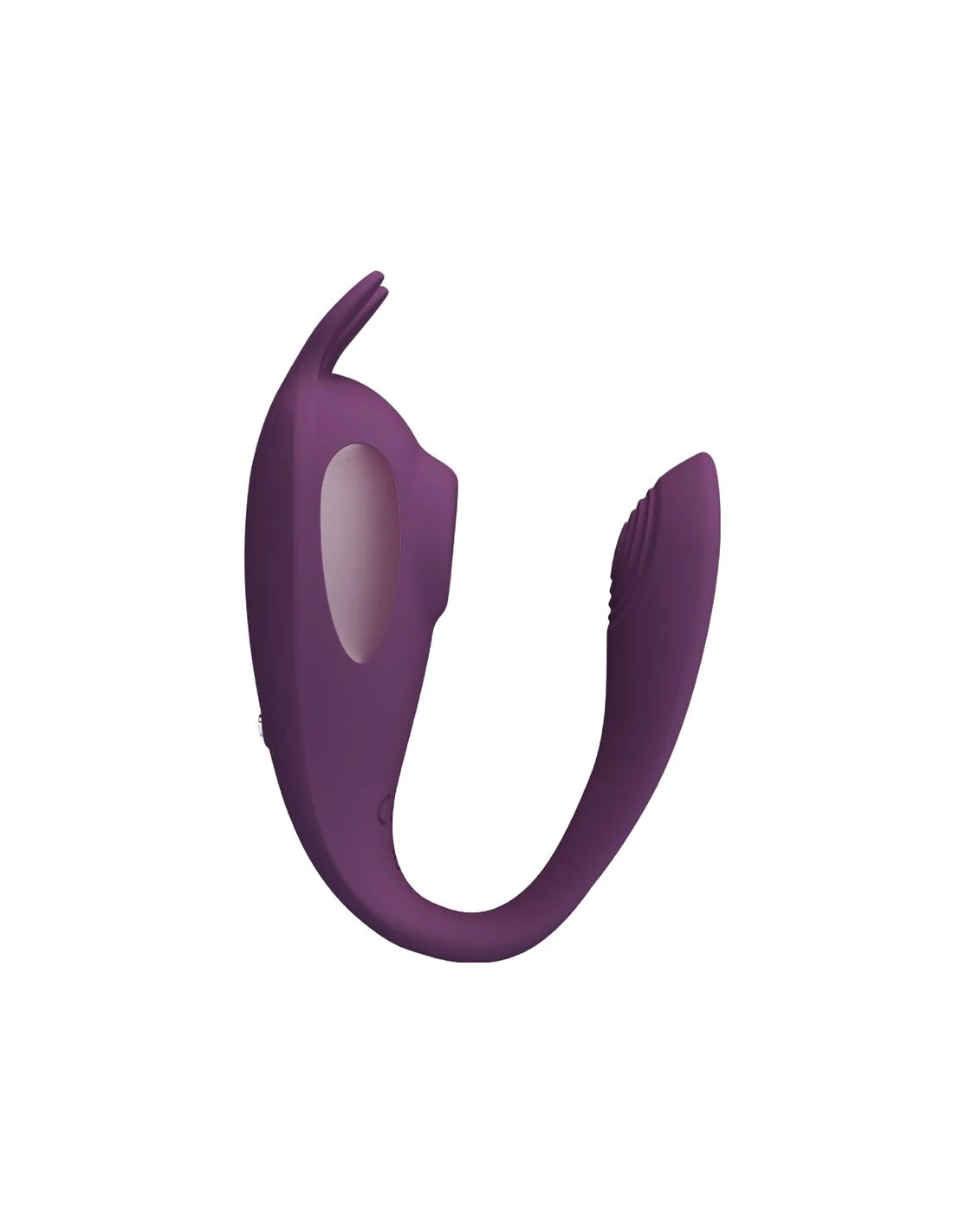 Diseñado ergonómicamente en forma de C, la mitad de la pieza se ajusta en el exterior de la vulva para brindar al clítoris 10 configuraciones de toques, mientras que la otra mitad ingresa en la vagina para brindar al punto G 10 funciones de vibración y un placer irrepetible.