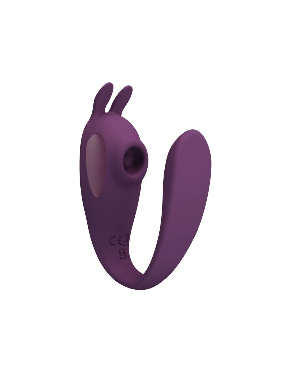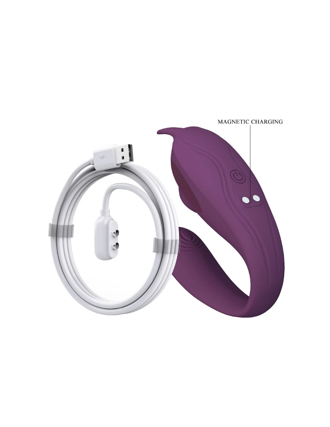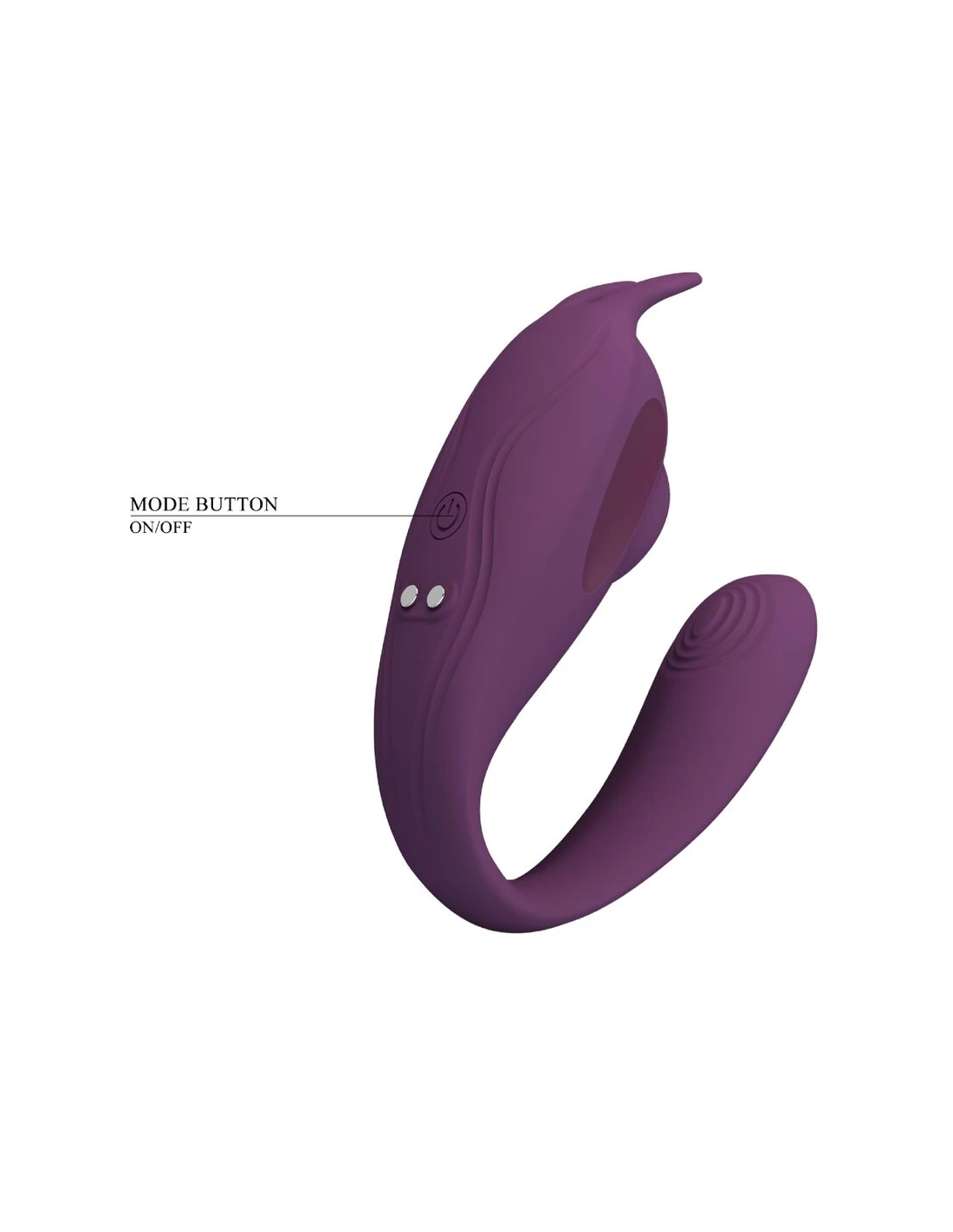 Diseñado ergonómicamente en forma de C, la mitad de la pieza se ajusta en el exterior de la vulva para brindar al clítoris 10 configuraciones de toques, mientras que la otra mitad ingresa en la vagina para brindar al punto G 10 funciones de vibración y un placer irrepetible.