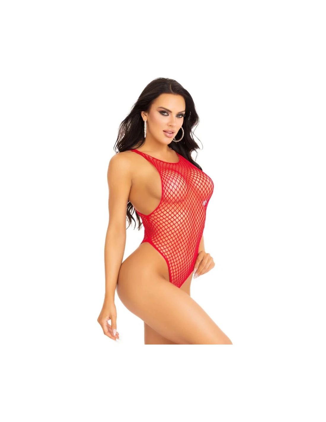 LEG AVENUE BODY DE TIRANTES TIPO TANGA DE REJILLA TALLA UNICA ROJO