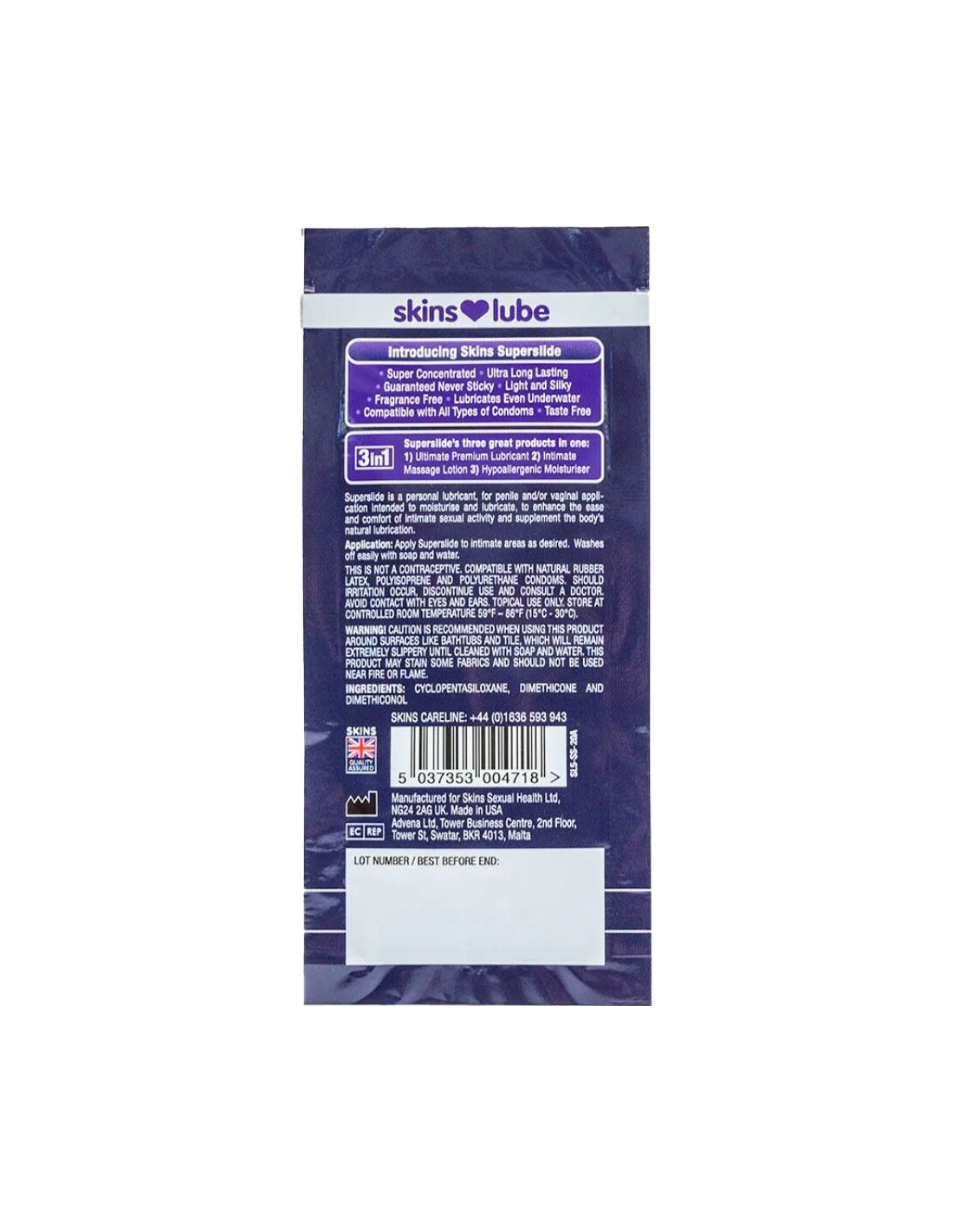 SKINS - SUPERSLIDE LUBRICANTE BASE DE SILICONA MONODOSIS 5 ML