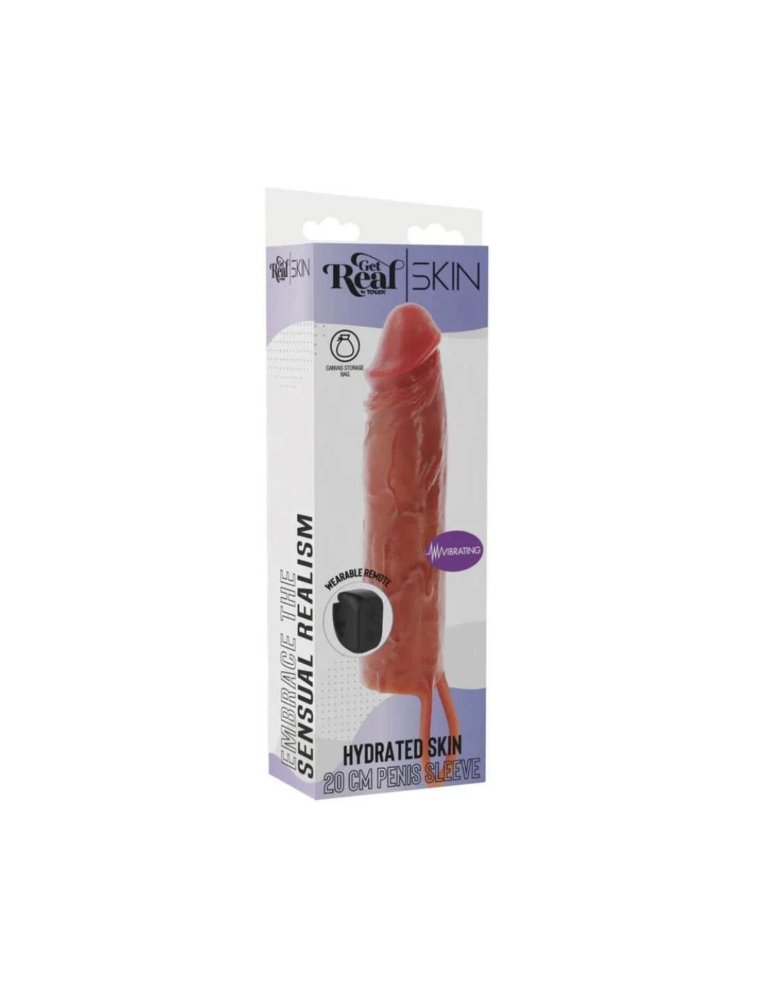 GET REAL - FUNDA HYDRATED SKIN DE SILICONA CON VIBRACIÓN PARA PENE CARAMELO 20 CM
