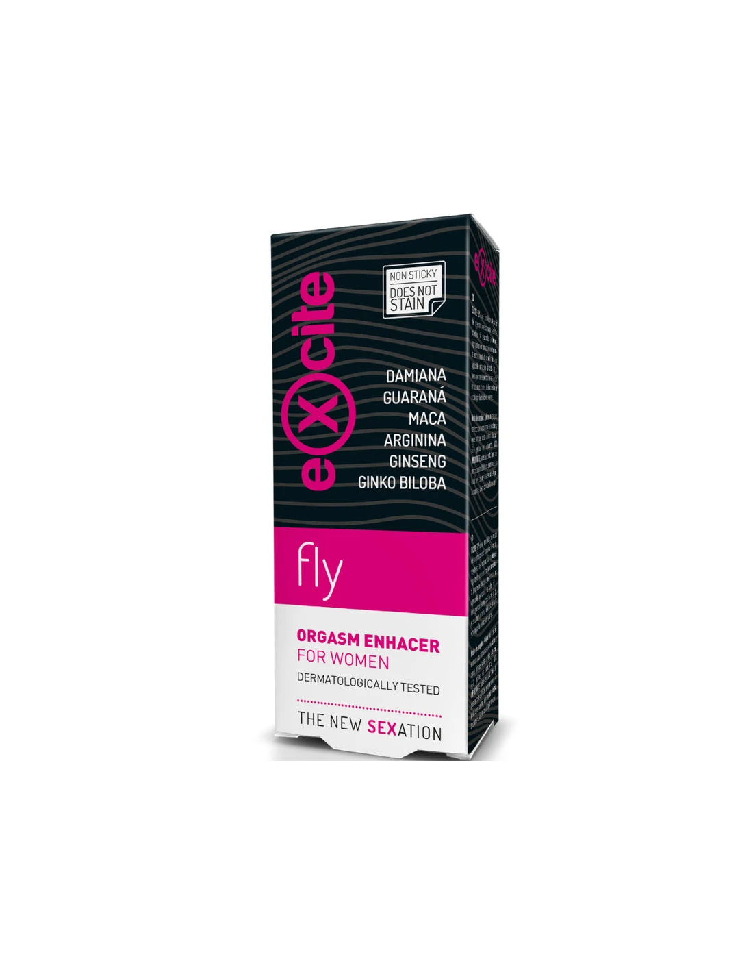 EXCITE FLY es el inimitable potenciador del orgasmo que combina extractos vegetales de reconocidas propiedades vigorizantes con una acción hiperhemiante enrojecimiento de la piel; notará una agradable sensación de calor, frío u hormigueo que aumentará la sensibilidad en sus zonas íntimas, ideal para estimular y prolongar la relación de la pareja.