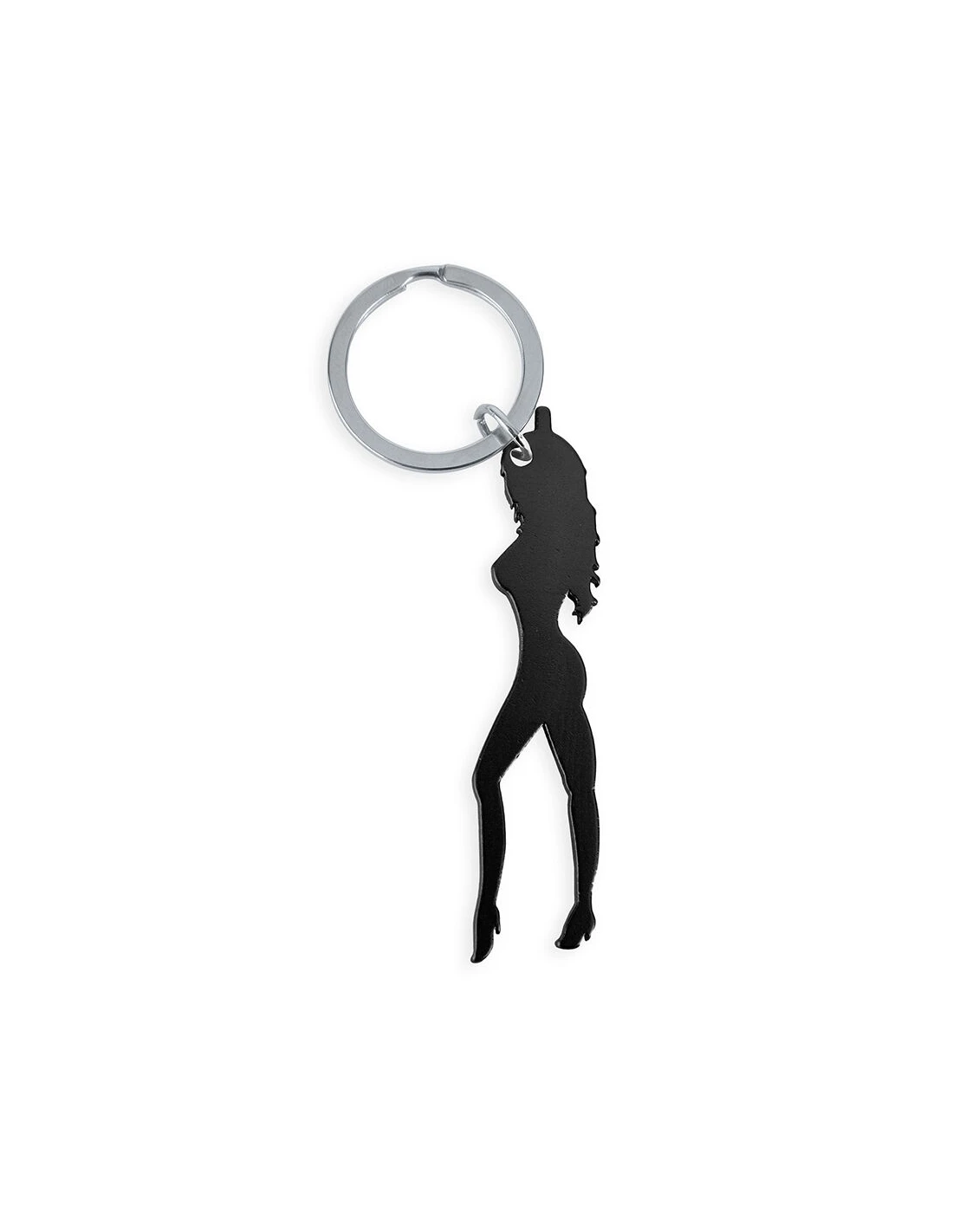 DIABLO PICANTE - LLAVERO CON SILUETA DE MUJER COLOR NEGRO CON ABRIDOR DE CERVEZA