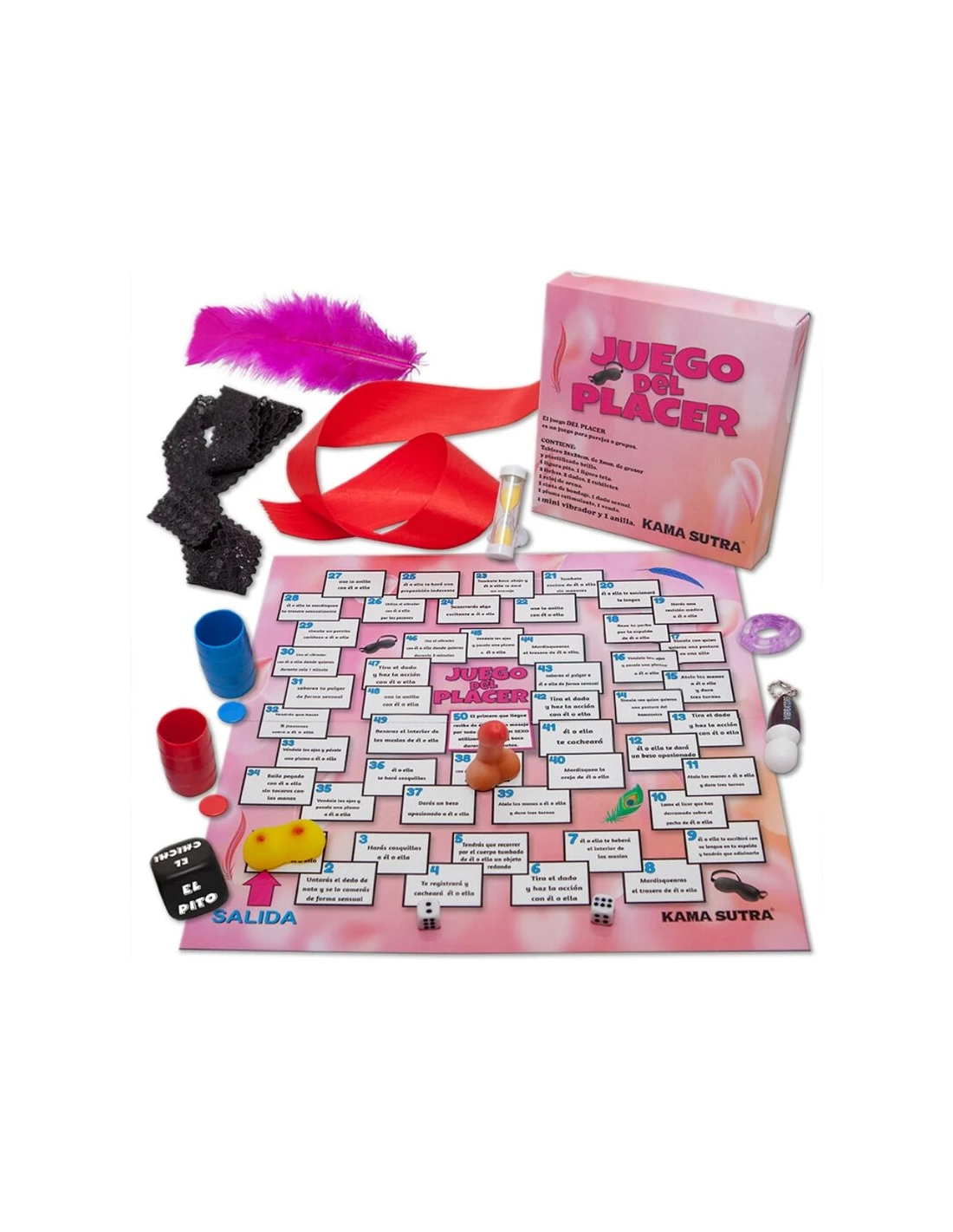 CONTIENE: MINI VIBRADOR, ANILLO PARA EL PENE, INSTRUCIONES, CINTA DE BONDAGE, VENDA PARA LOS OJOS, PLUMA ESTIMULANTE, UN DADO DE GRAN CALIDAD, RELOJ DE ARENA,1 FIGURA PITO Y FIGURA TETA, 2 FICHAS, 2 CUBILETES, 2 DADOS NUMERICOS Y UN TABLERO PLASTIFICADO A TODO COLOR.