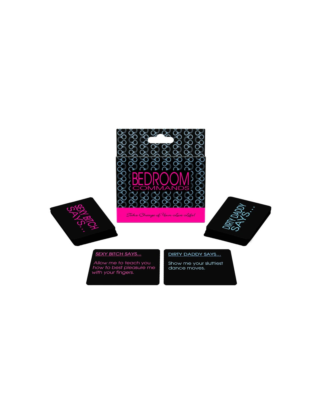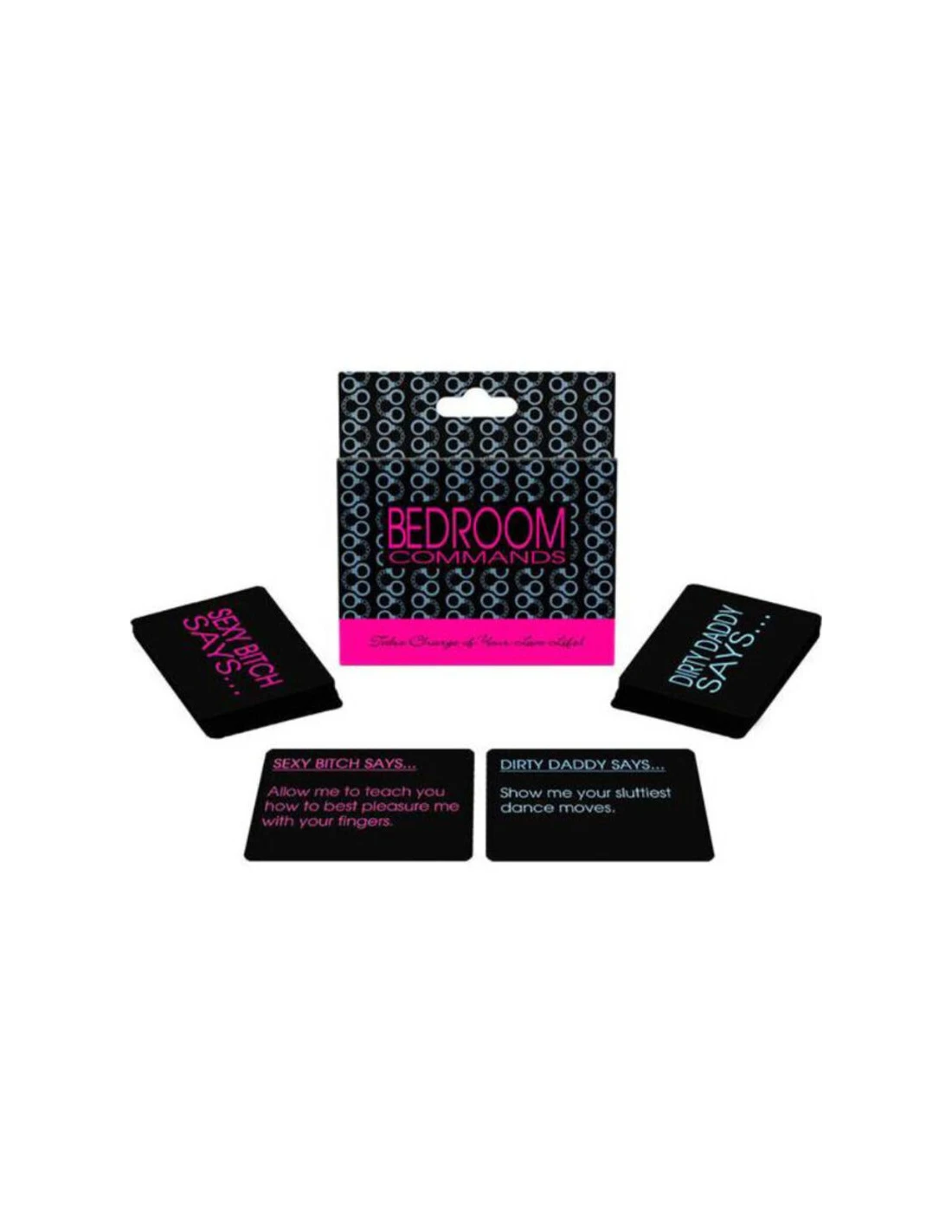¡Toma el control de tu vida amorosa! Dormitorio Comandos es un juego de cartas de dos mazos de comandos. Una baraja es para Dirty Daddy y la otra para Sexy Bitch. Siempre que alguno de los dos tenga ganas de hacerse cargo de su vida amorosa, seleccione una carta para revelar una acción para la noche. Algunas cartas son graciosas, divertidas y sexys. Otras tarjetas ofrecen sugerencias sexuales únicas para aportar algo de variedad a su relación.