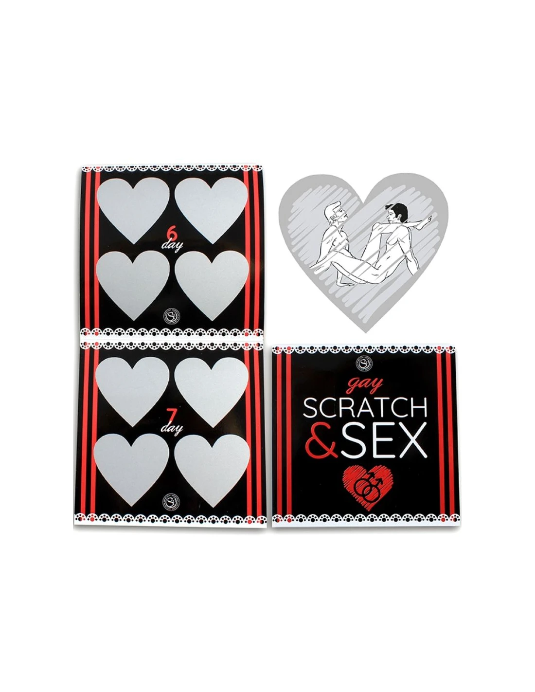 Rasca una opción cada día y si estás de suerte, descubrirás una postura nueva con la que disfrutar en pareja. Existen cuatro opciones diferentes a rascar para cada día, teniendo 7 días en total. Puedes terminar la tanda de una semana y luego volver a rascar desde el principio descubriendo las posturas restantes, permitiéndote así disfrutar de 4 semanas de juego.