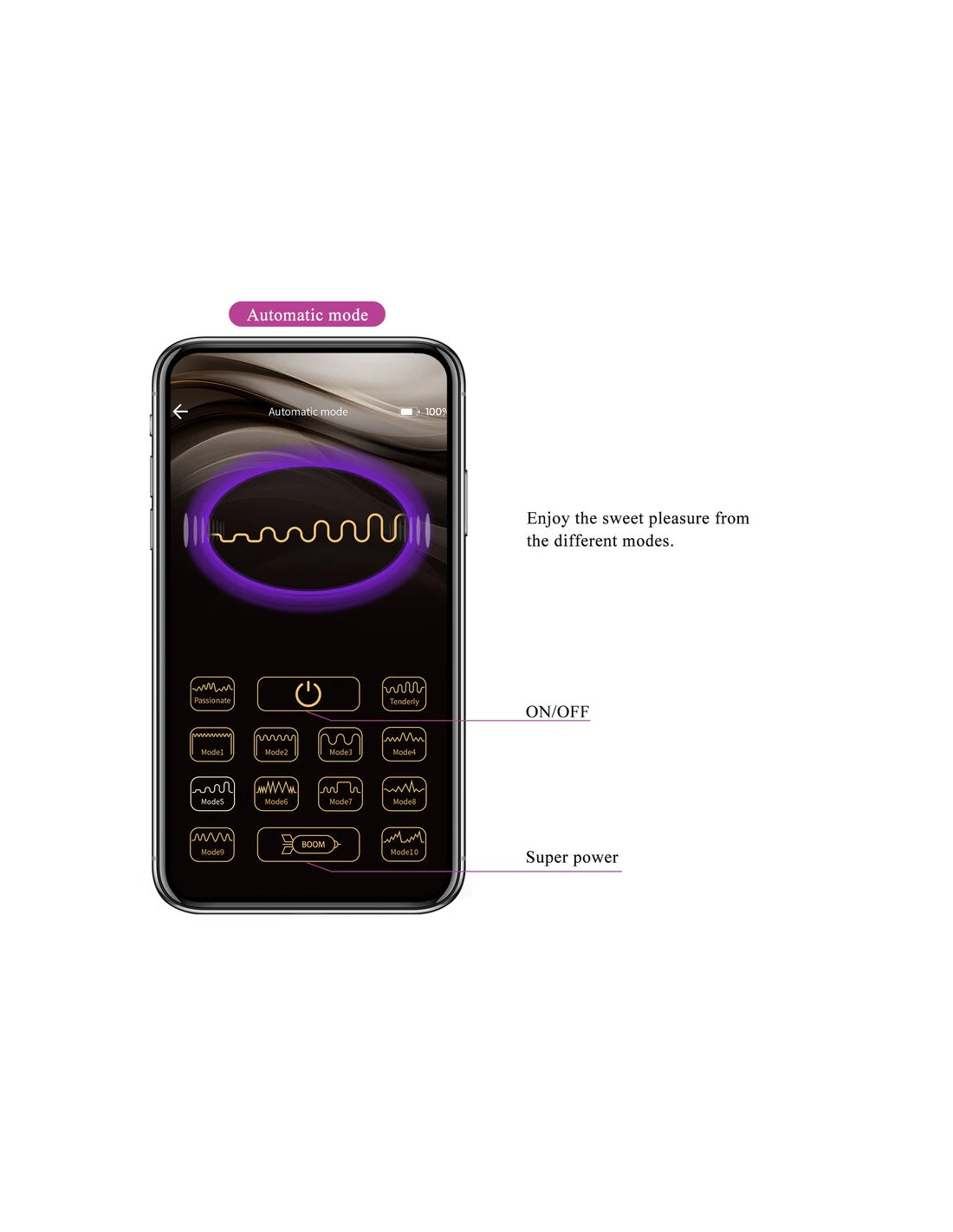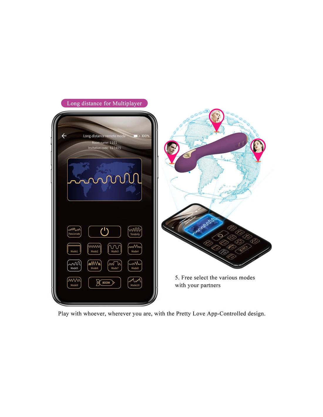- Función:12 funciones de vibración, 5 funciones de descarga eléctrica, aplicación móvil, control de larga distancia