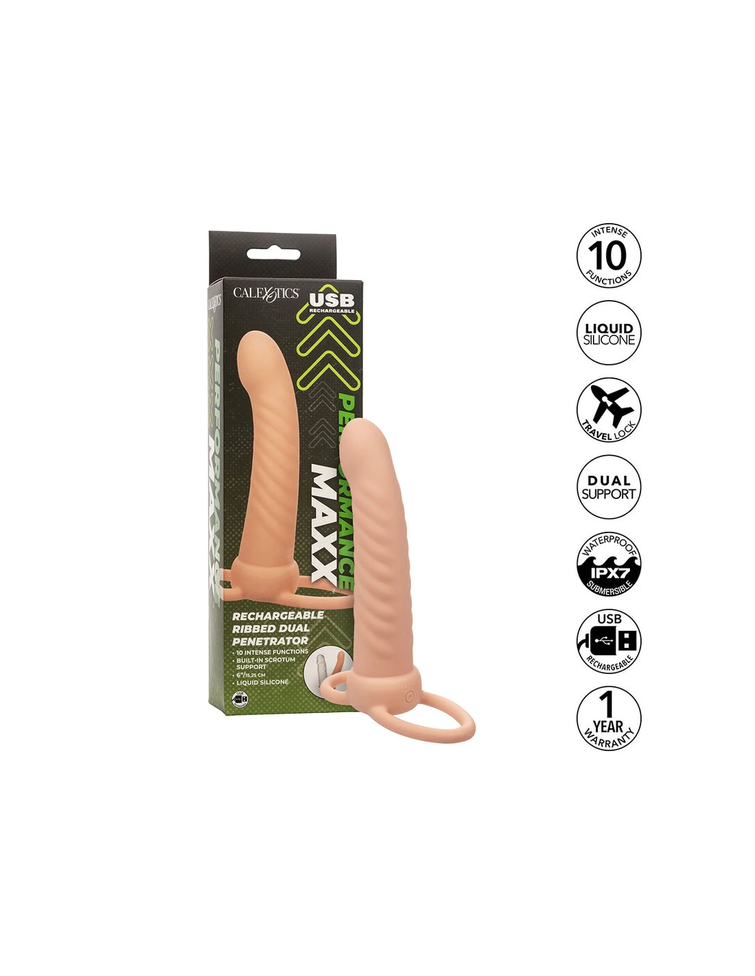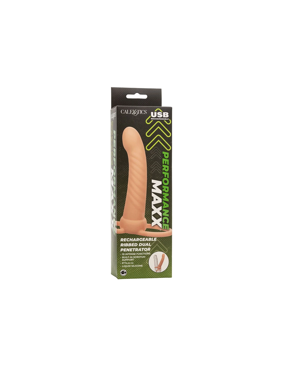 Desata tu curiosidad con Performance Maxx Rechargeable Ribbed Dual Penetrator.