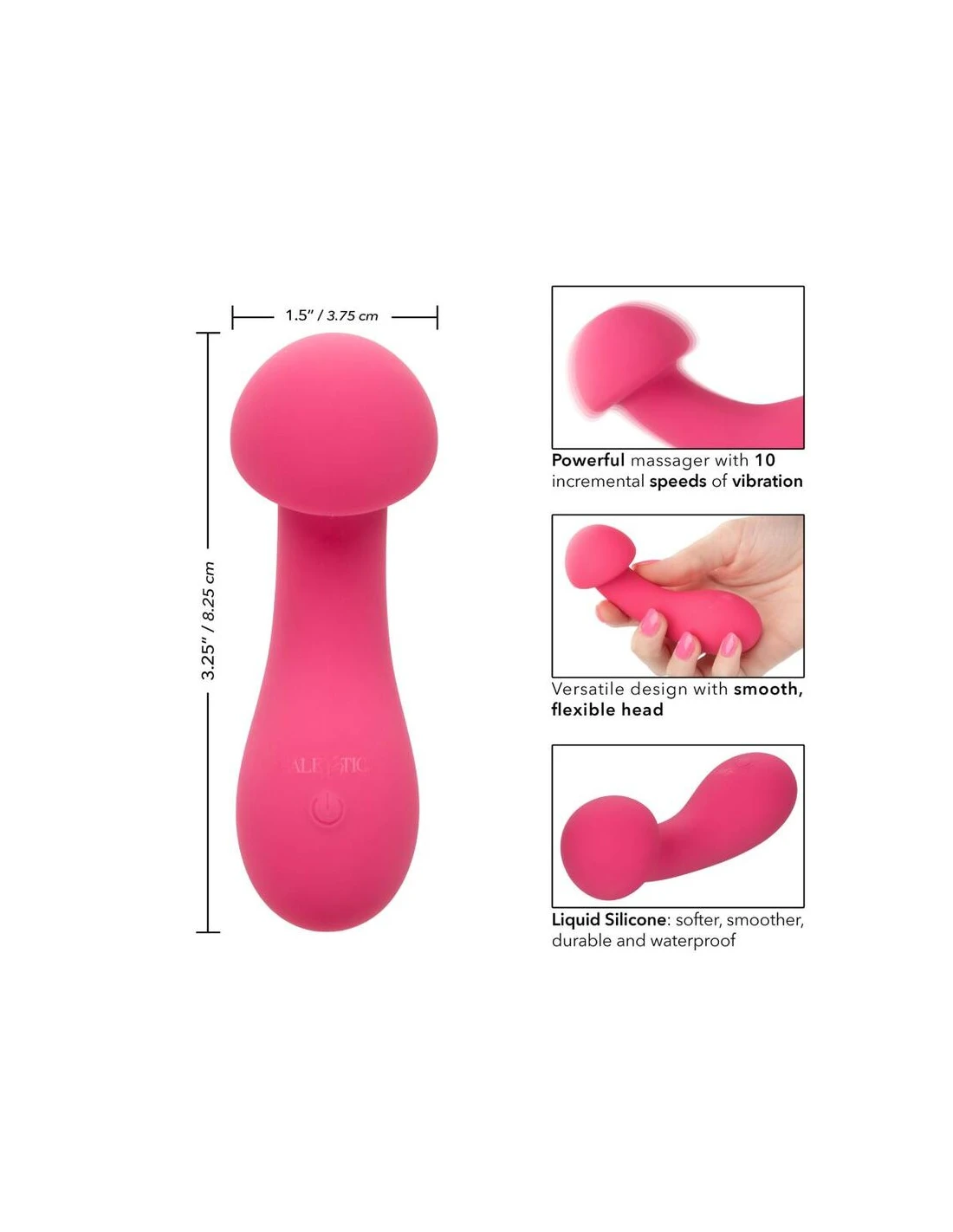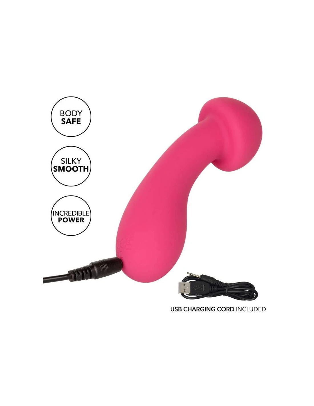 El excitador de Pixies Liquid Silicone está diseñado para ofrecer una sensación de sacudida de rodilla a sus puntos de placer favoritos. La cabeza flexible juguetona, el diseño de doble cara y las 10 velocidades emocionantes de vibraciones hacen que este sea el compañero de viaje perfecto. El masajeador curvo se ajusta en su mano para permitirle entregar tentalización precisa y emocionar con vibraciones contorneadas. Obtenga juguetón con cada aumento de las 10 velocidades incrementales de vibración con el botón de control de fácil toque. Control sin esfuerzo El placer puro con un botón de silicona de fácil toque y mantenga presionada durante 3 segundos para encenderse o desactivarse. La silicona líquida ultra pluscada y la cabeza única flexible son excelentes para explorar puntos dulces sensuales y puntos de placer íntimos con facilidad. Con una forma suave, punta de bombillas y superficie flexible, podrá disfrutar de vibraciones emocionantes desde cualquier ángulo que desee. Use el control suave de un solo botón para disfrutar de hasta 110 minutos de placer vibrante. Cargue su pasión en solo 1,5 horas conectando el cable USB proporcionado al puerto de carga de auto-selección en la base del masajeador. El tamaño discreto del masajeador delgado lo convierte en el compañero de viaje perfecto, lo que le permite adoptar el placer radiante donde sea que sus fantasías lo lleven .