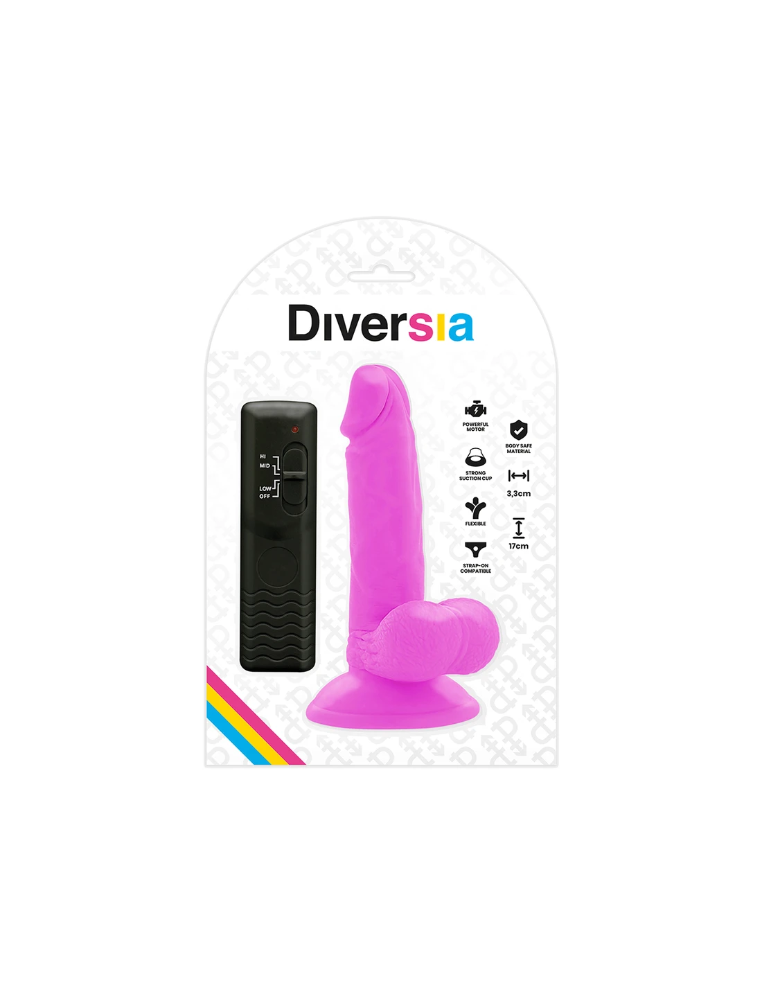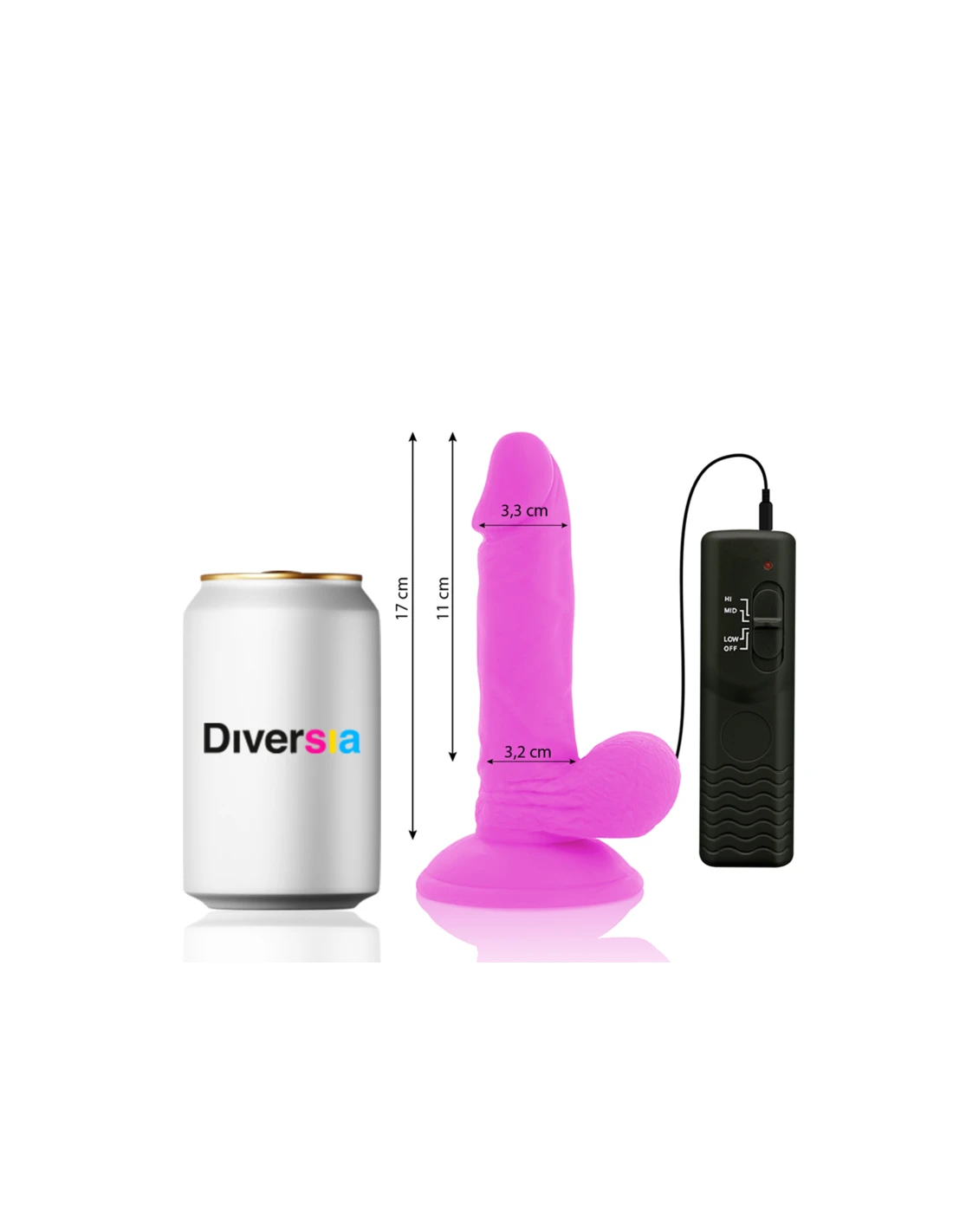 DIVERSIA - DILDO REALÍSTICO FLEXIBLE CON VIBRACIÓN MORADO 17 CM -O- 3.3 CM